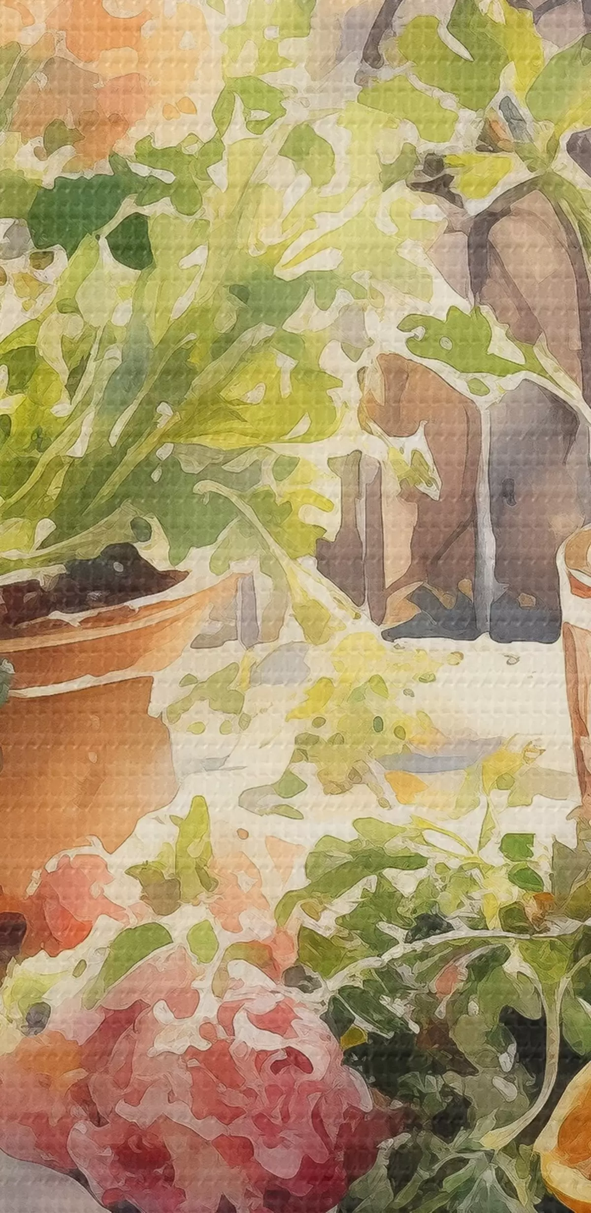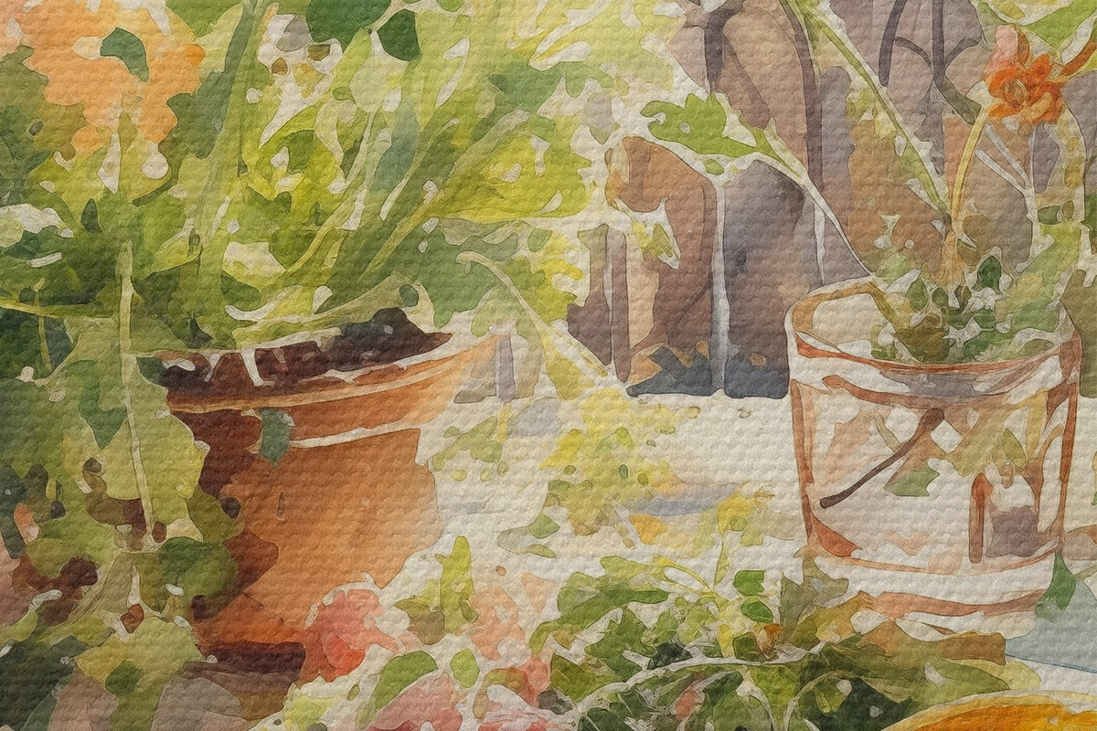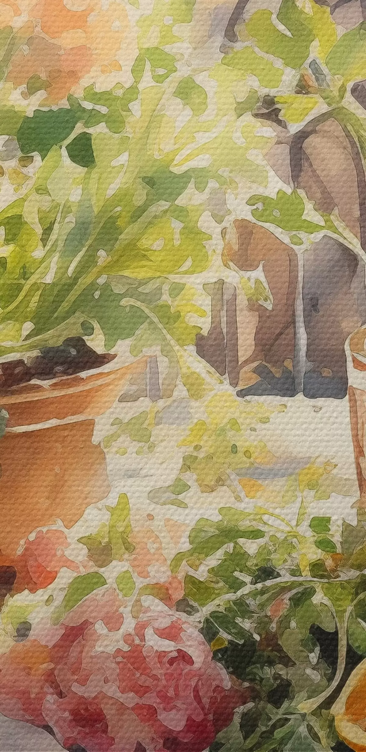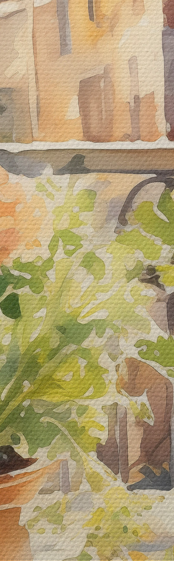 Foto Cena de acuarela, vista de la ciudad, flores, naturaleza, ensalada verde Nr r41166