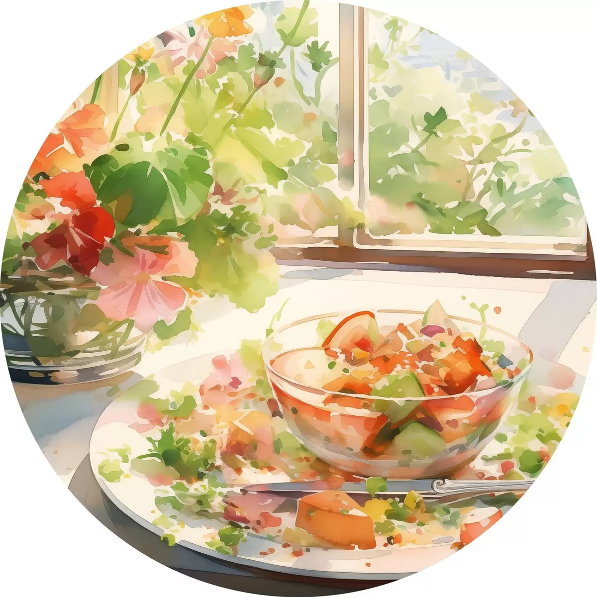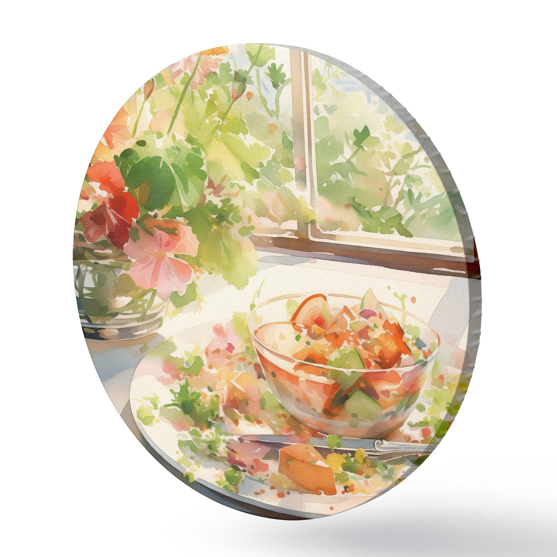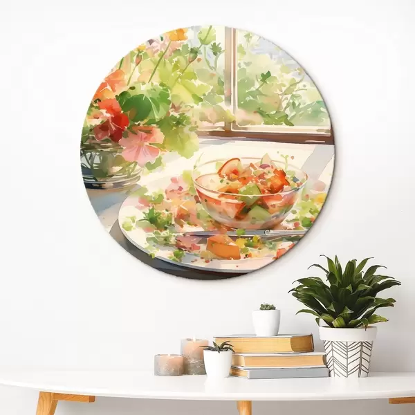 Cuadros redondos Ensalada verde acuarela, luz del sol en la ventana, estilo rústico r41167