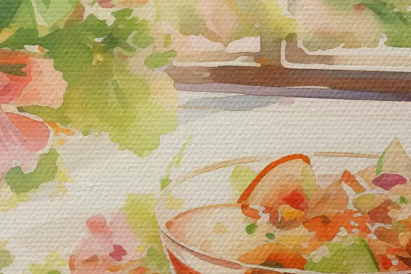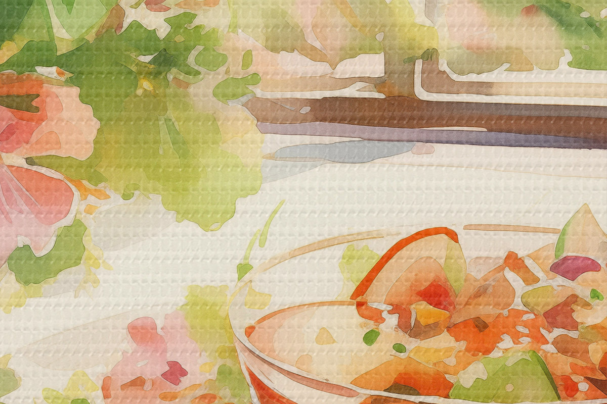 Foto Ensalada verde acuarela, luz del sol en la ventana, estilo rústico Nr r41167