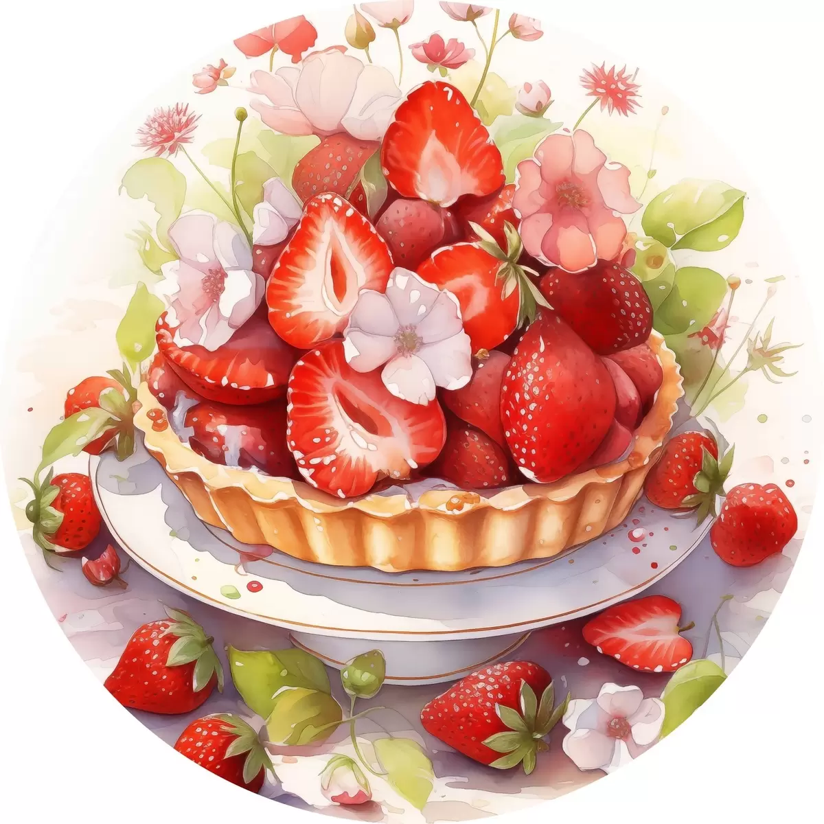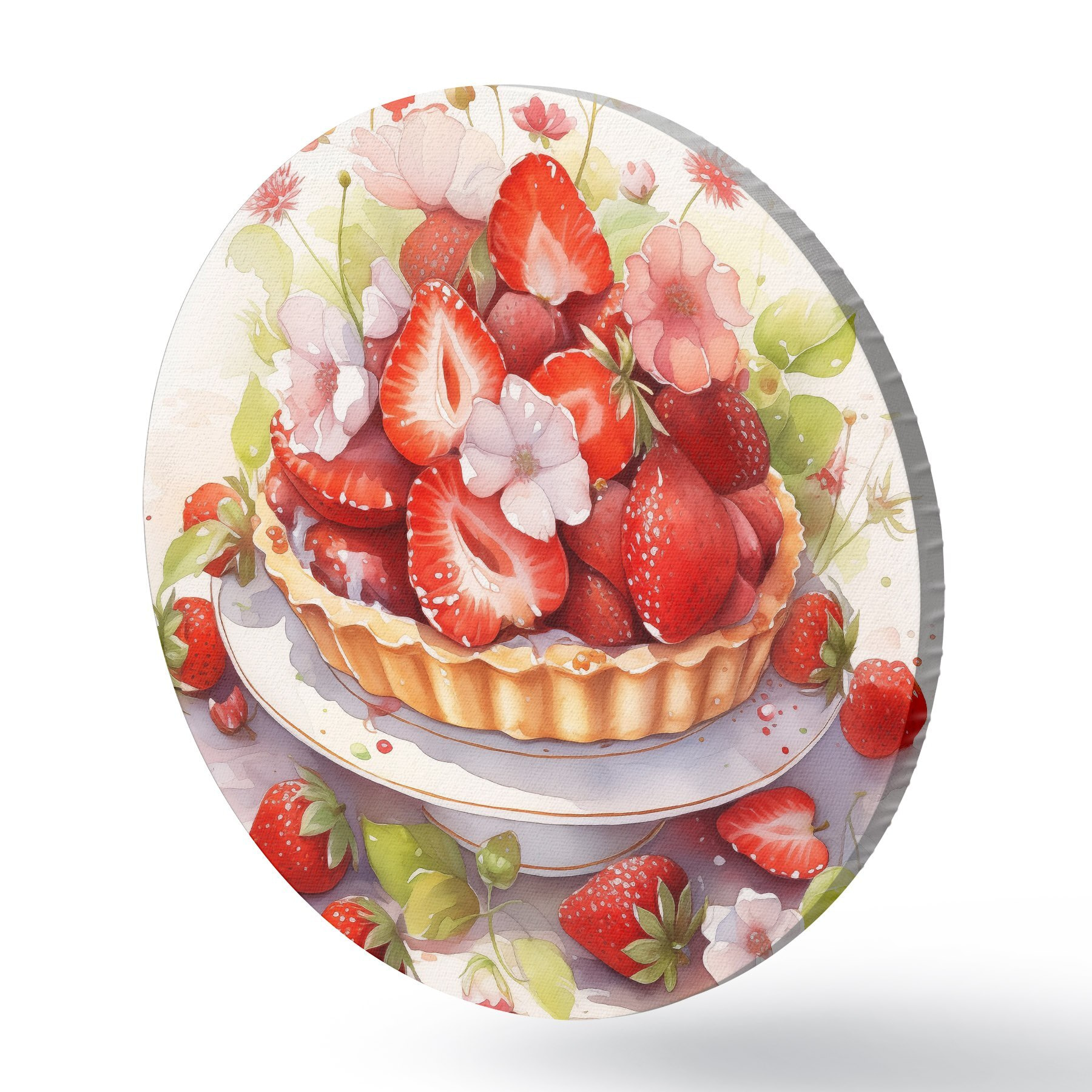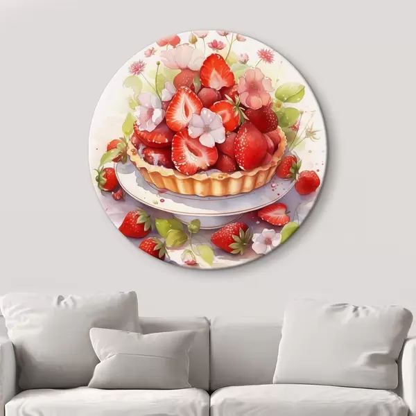 Cuadros redondos Tarta de fresas, acuarela, flores r41177