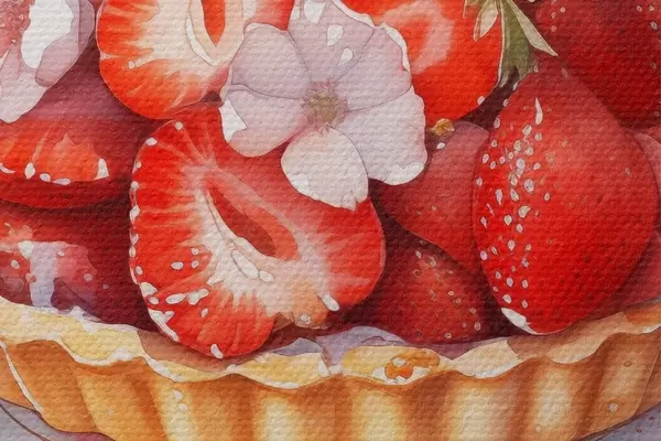 Foto Tarta de fresas, acuarela, flores Nr r41177