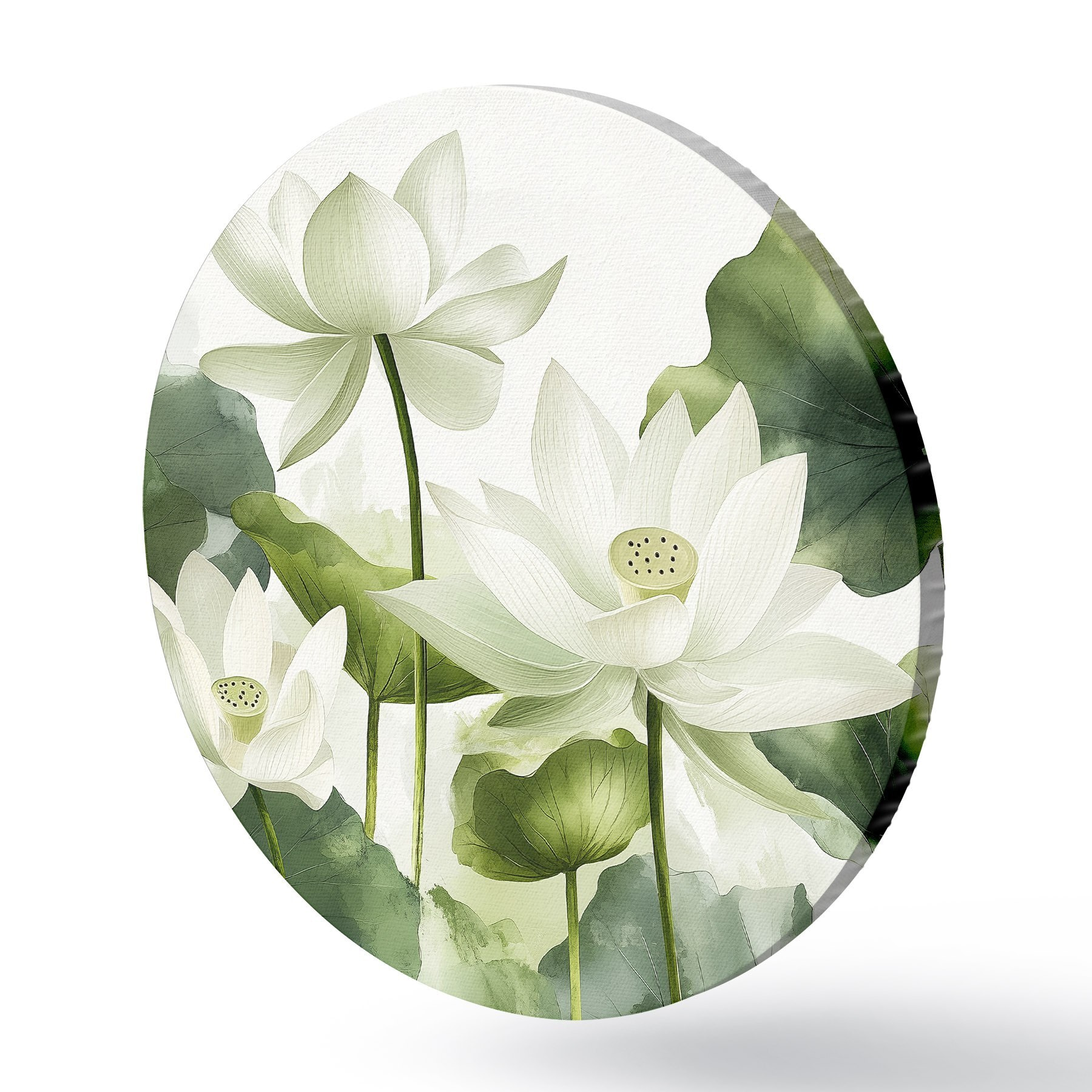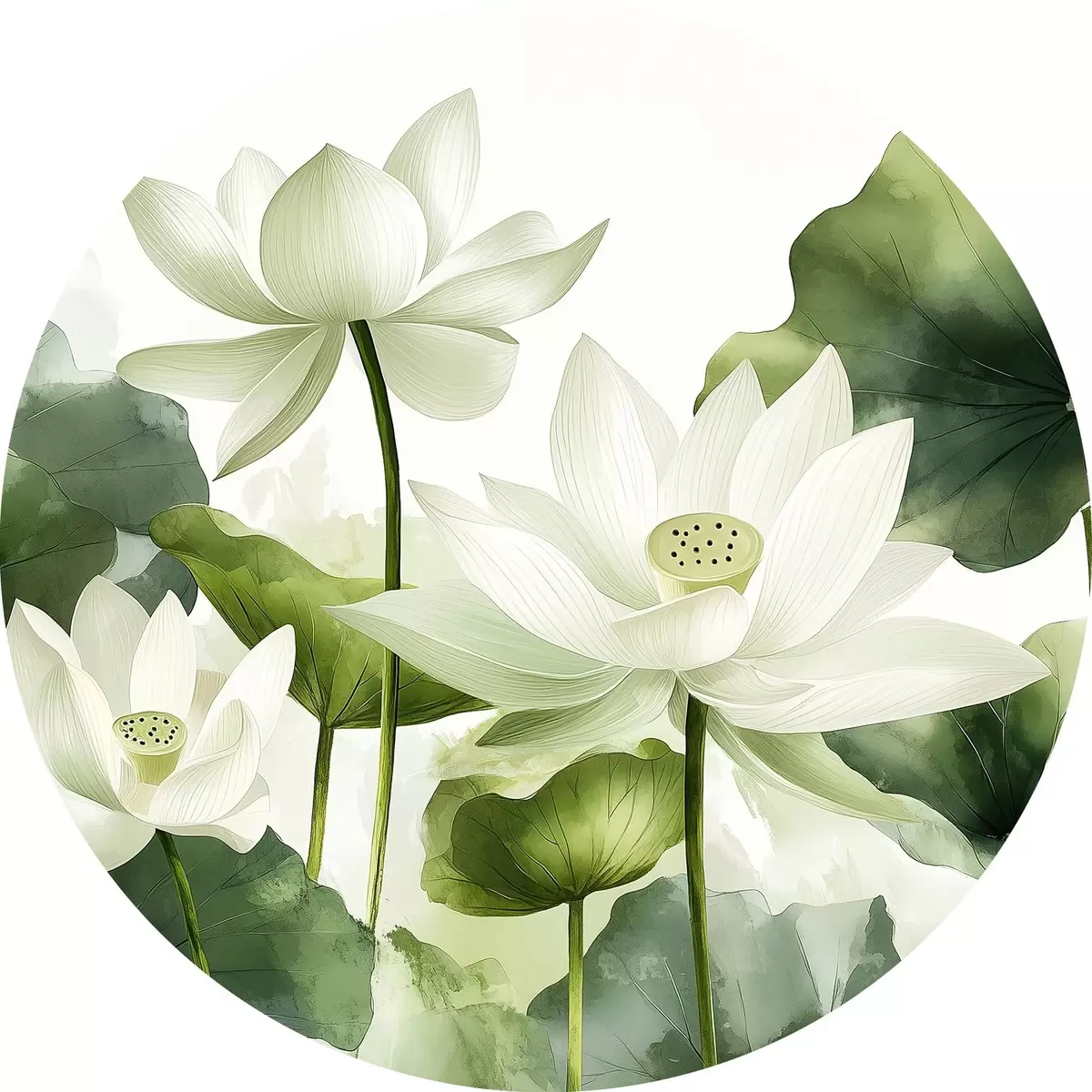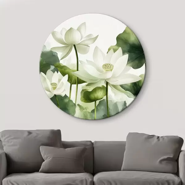 Cuadros redondos Preciosas flores de loto en acuarela r41227