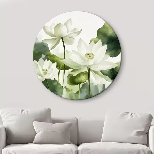 Cuadros redondos Preciosas flores de loto en acuarela r41227