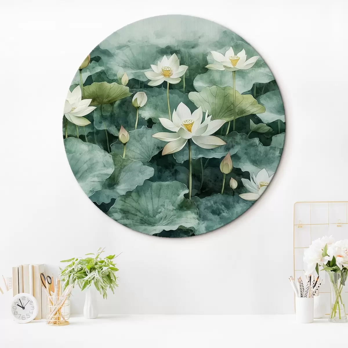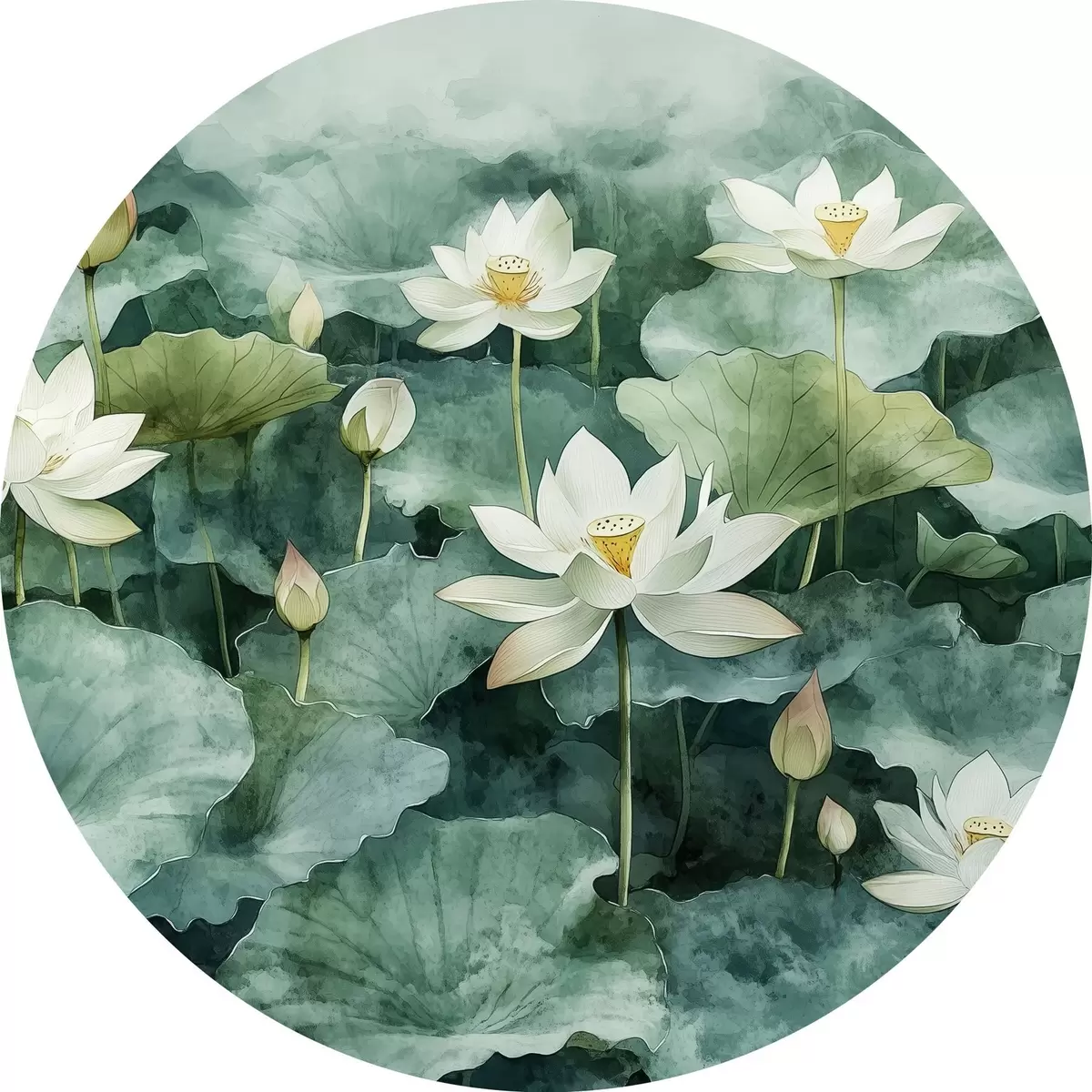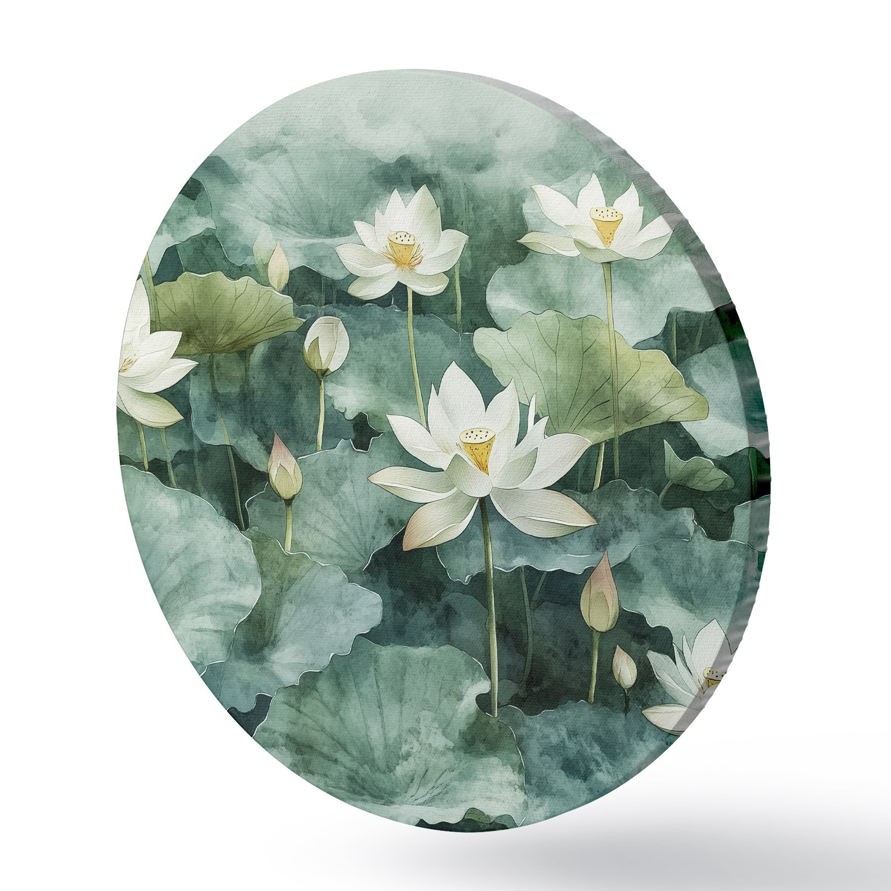 Cuadros redondos Lotos en el estanque, acuarela, verde r41228