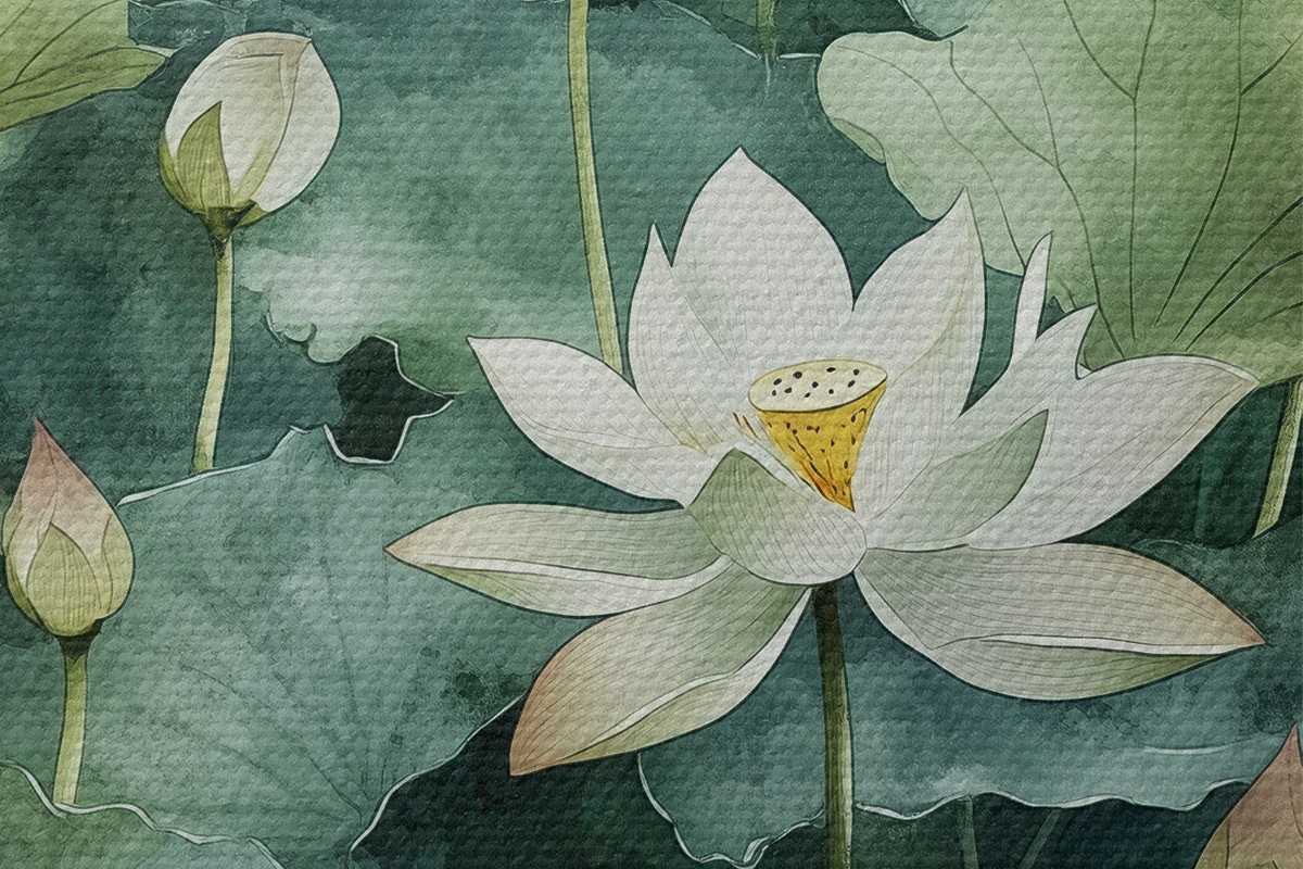 Foto Lotos en el estanque, acuarela, verde Nr r41228