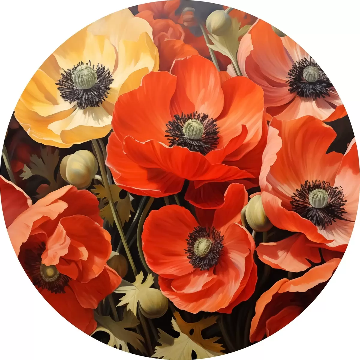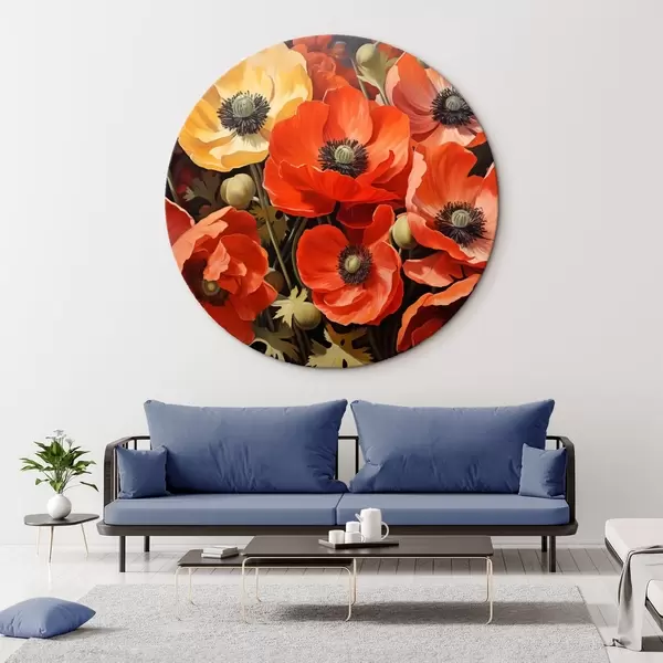 Cuadros redondos Amapolas rojas y naranjas r41243