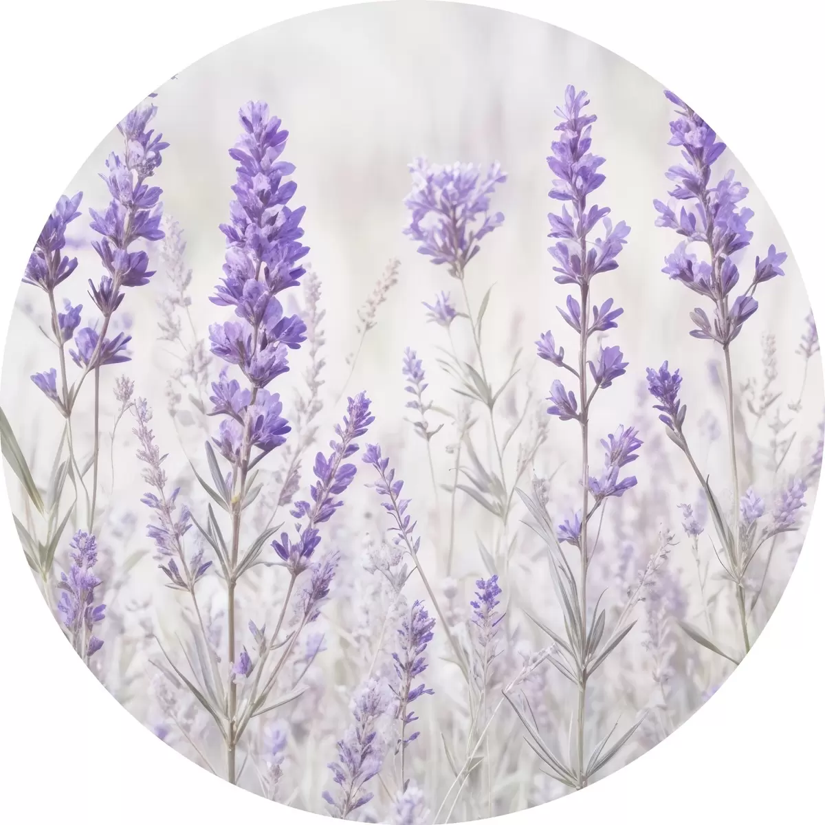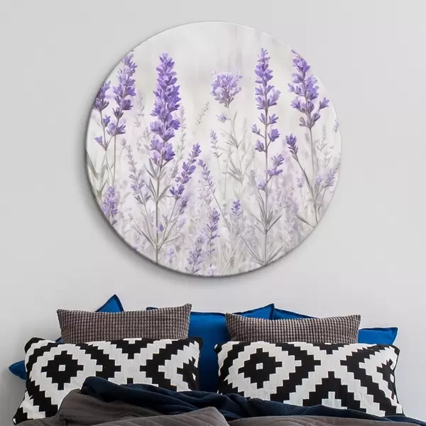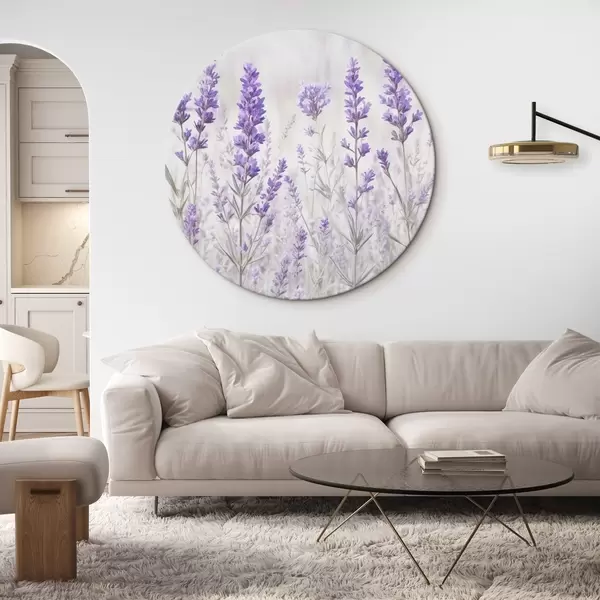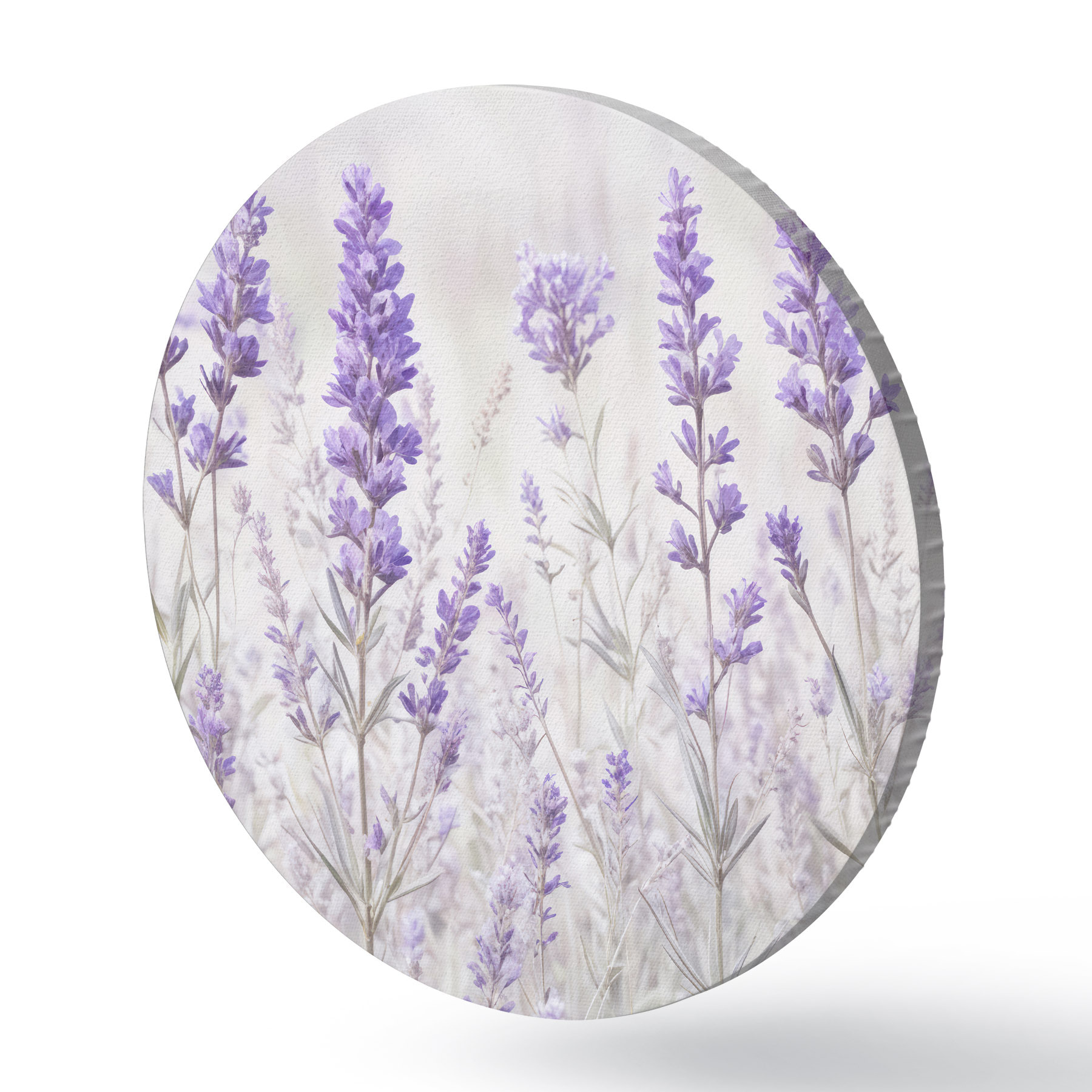 Cuadros redondos Campo de flores de lavanda púrpura sobre un fondo borroso con textura r41265