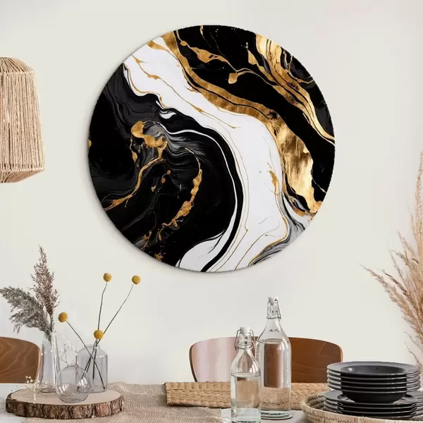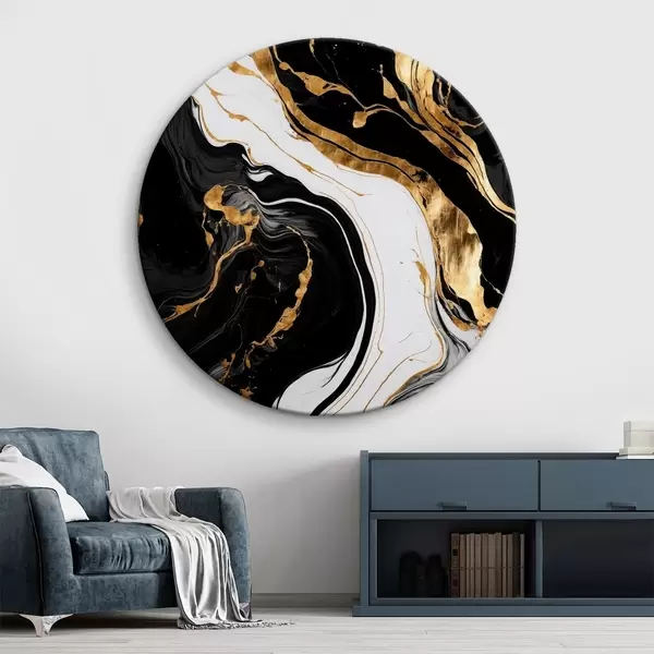 Cuadros redondos Imagen abstracta en blanco y negro con manchas amarillas r41292