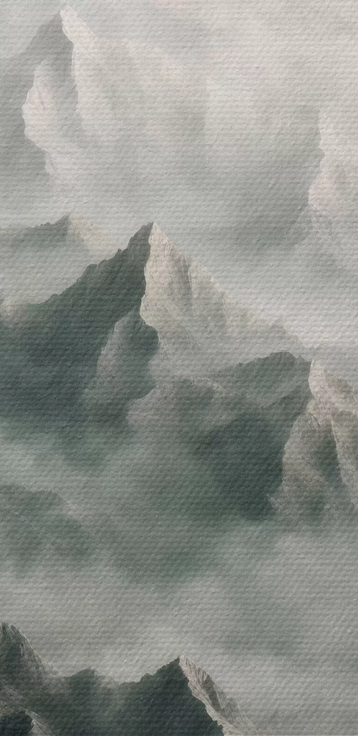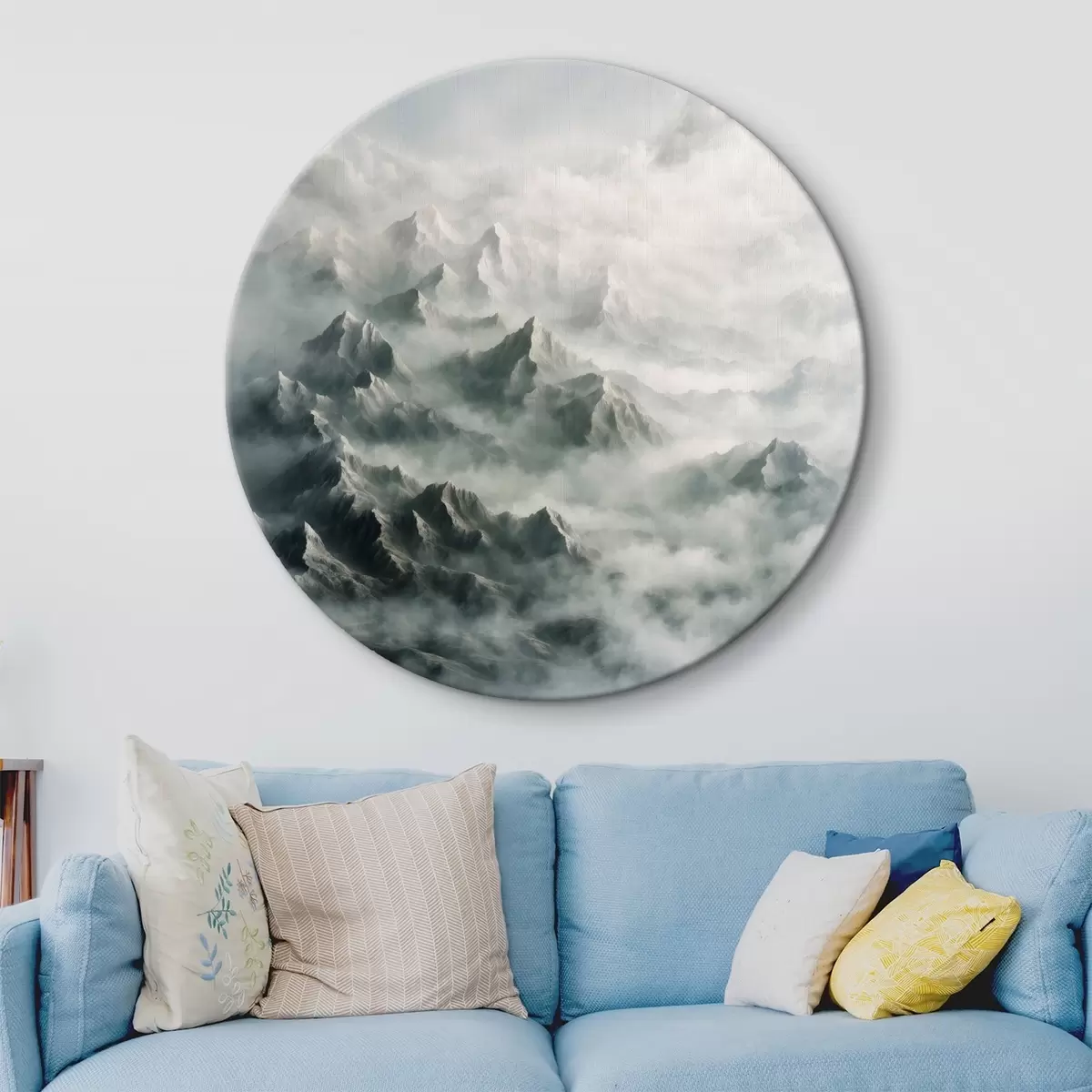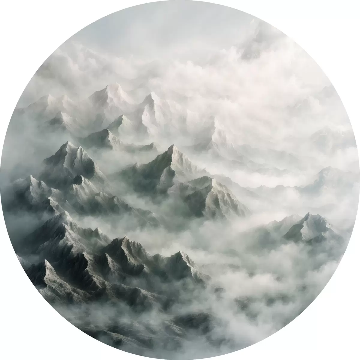 Cuadros redondos Montañas nevadas en la niebla r41301