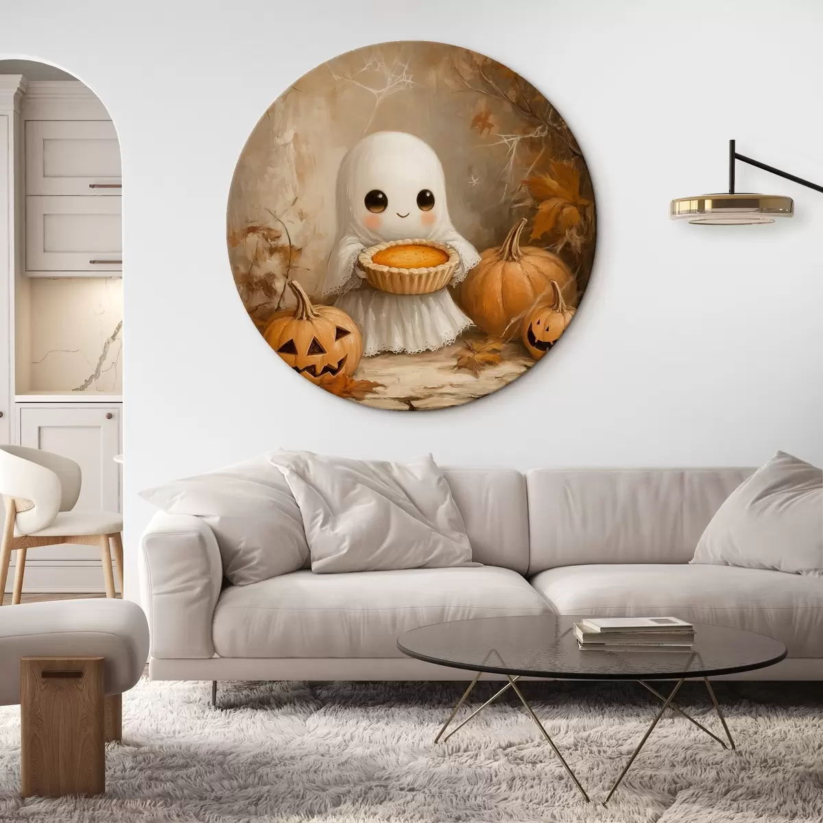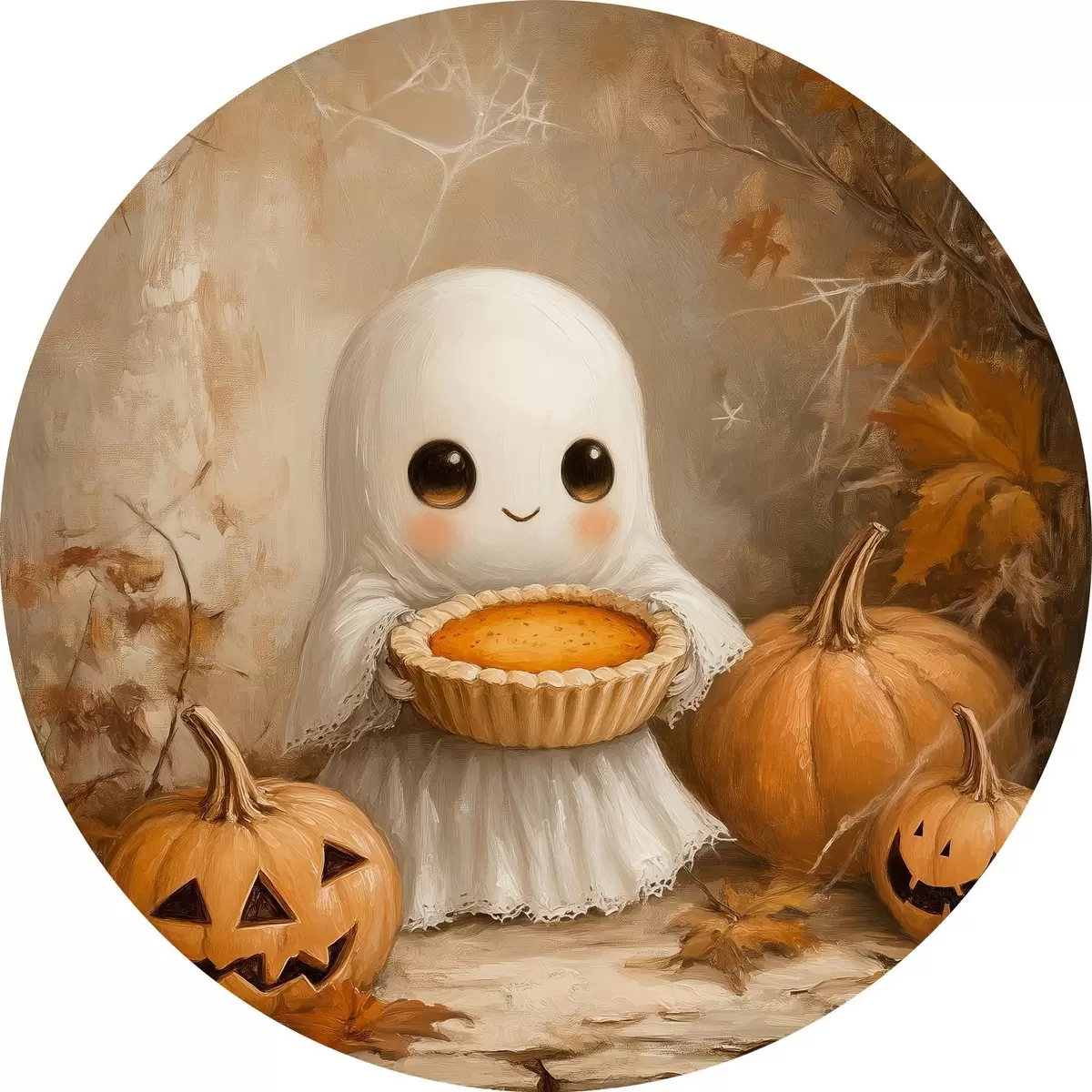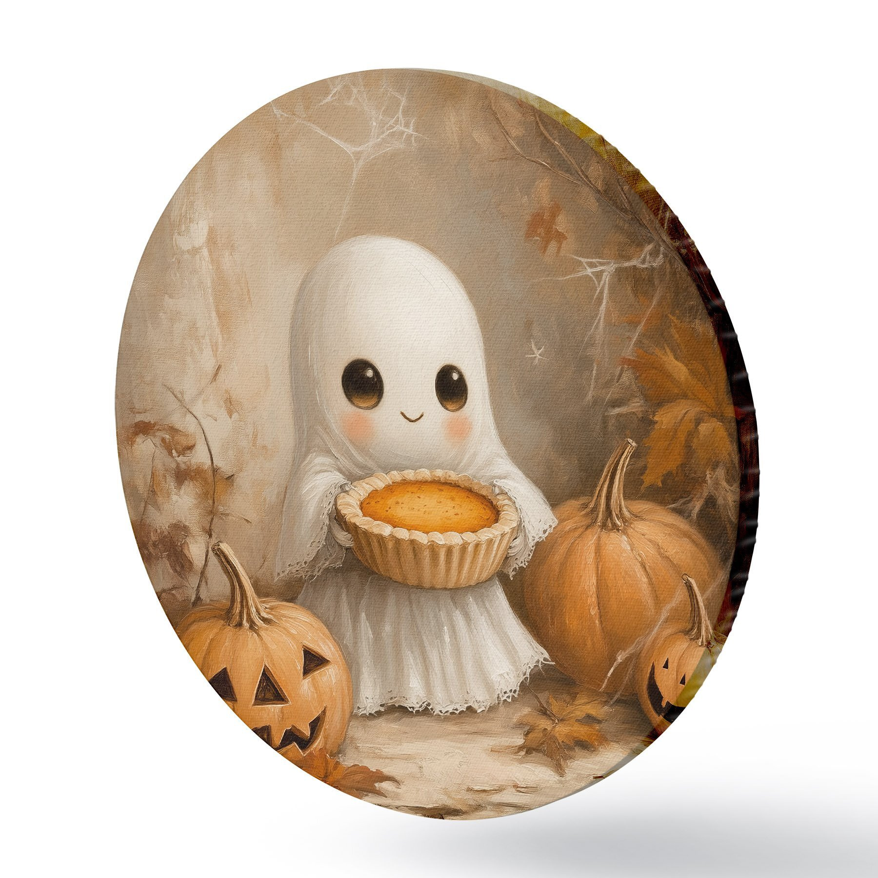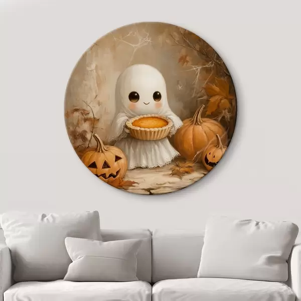 Cuadros redondos Fantasma sosteniendo una tarta de calabaza r41340