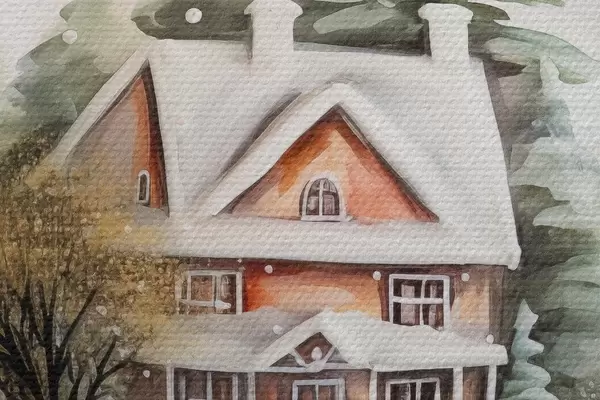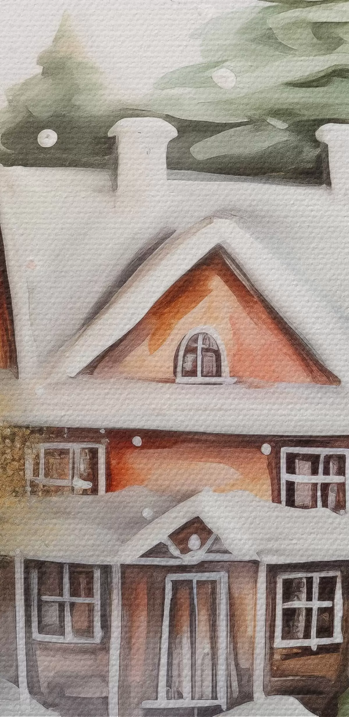 Foto Bola de cristal con casa de acuarela y árboles en la nieve Nr r41365