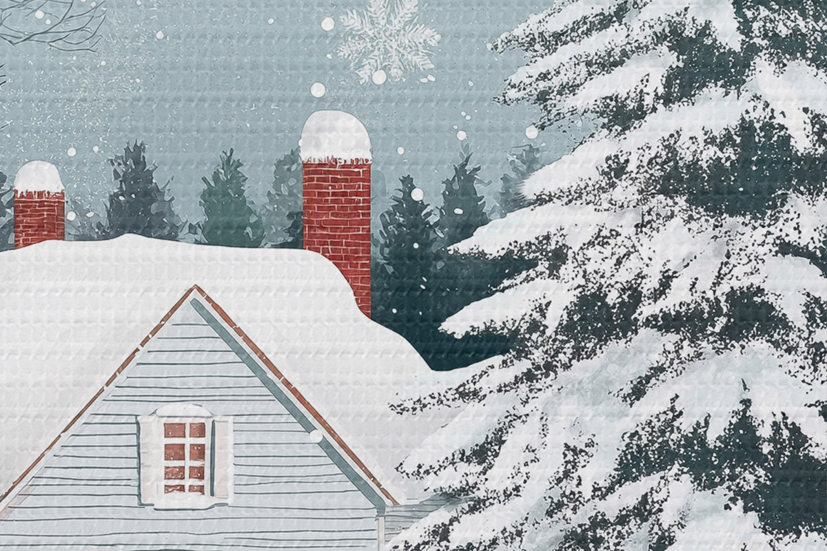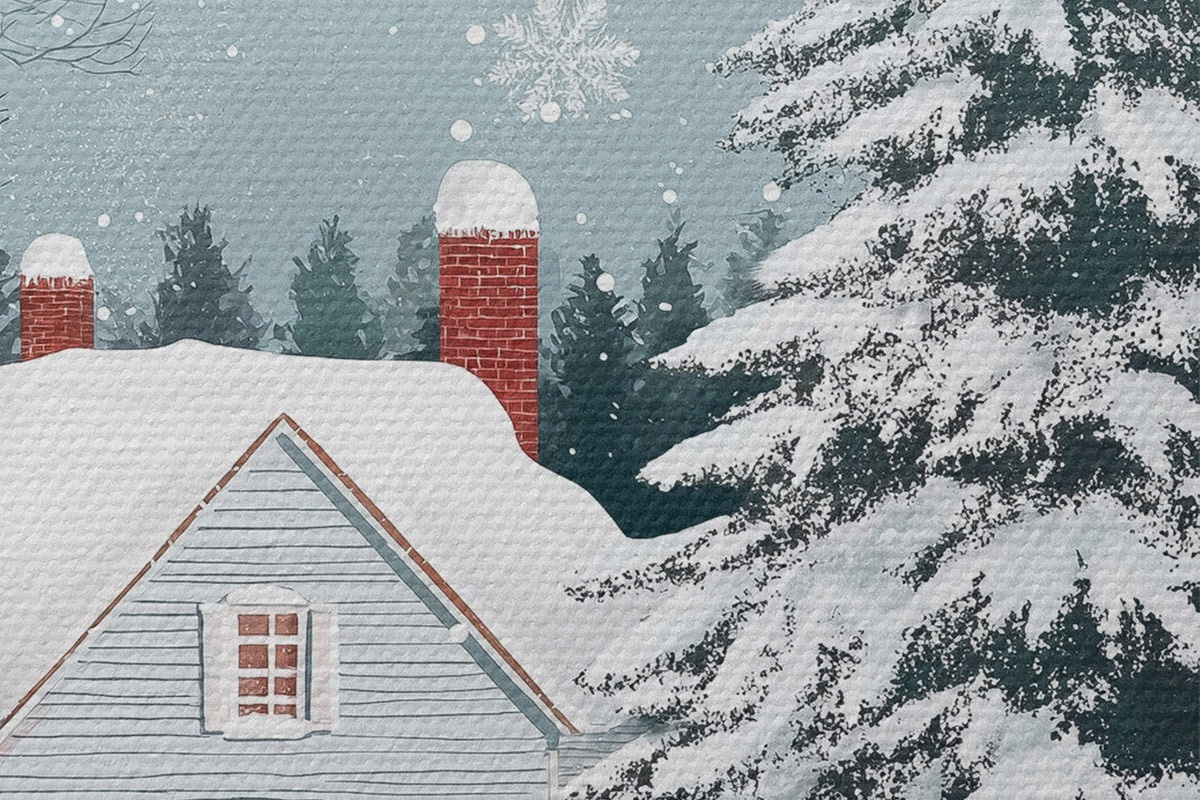 Foto Escena invernal con casa cubierta de nieve, bosque, pinos Nr r41369