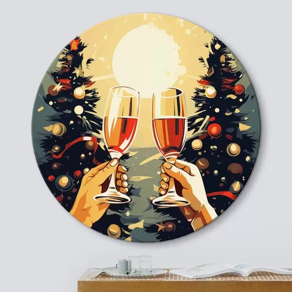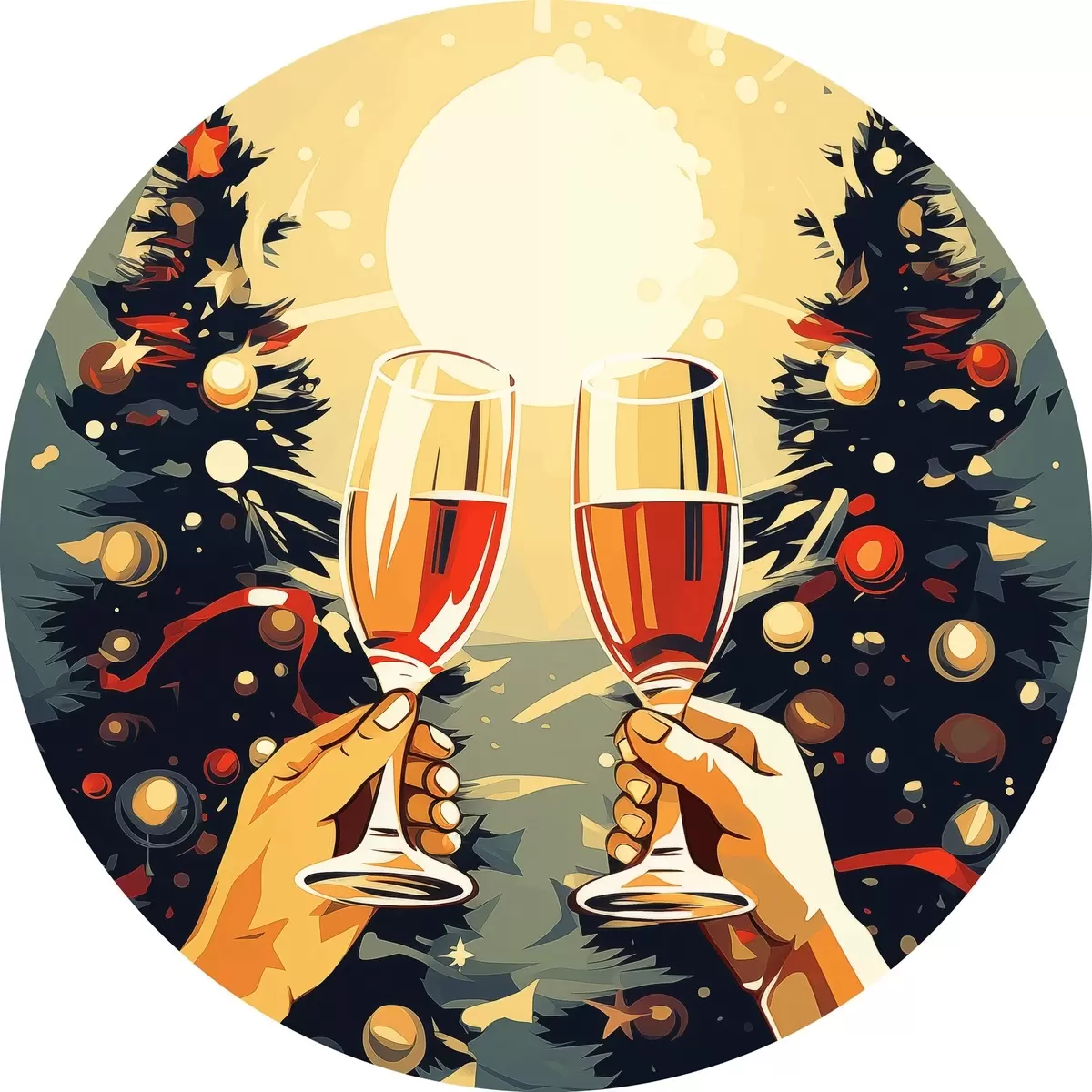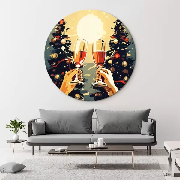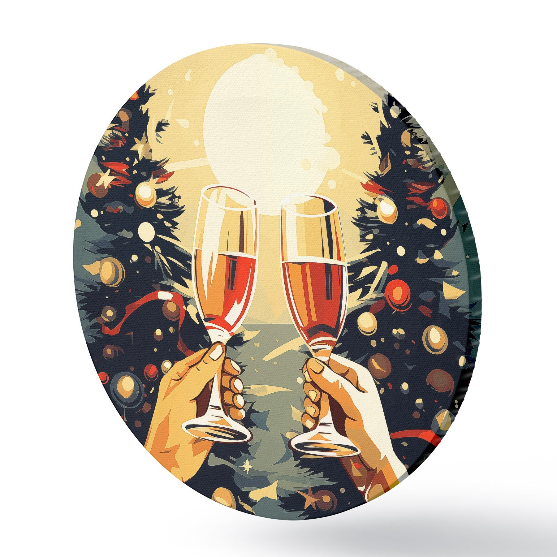 Cuadros redondos Copas con champán, Navidad, Año Nuevo, abstracción, arte pop, pinos r41374