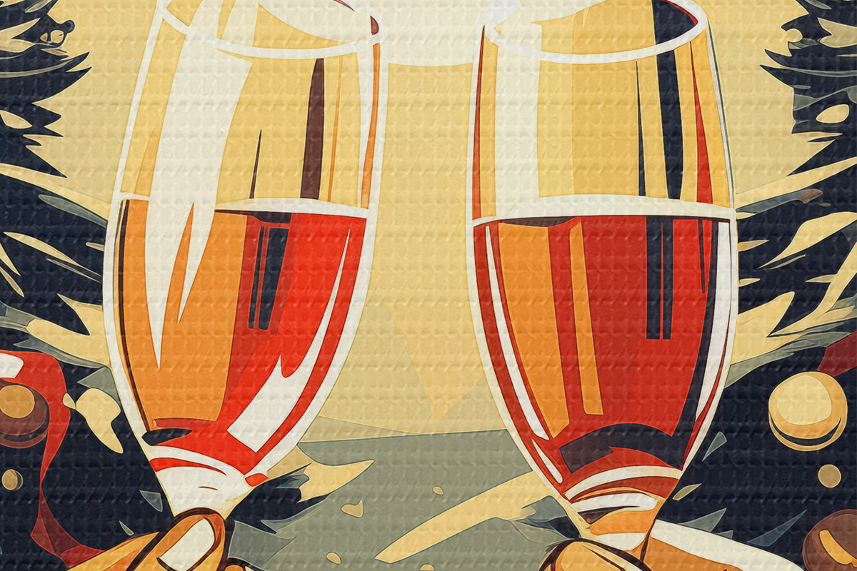 Foto Copas con champán, Navidad, Año Nuevo, abstracción, arte pop, pinos Nr r41374