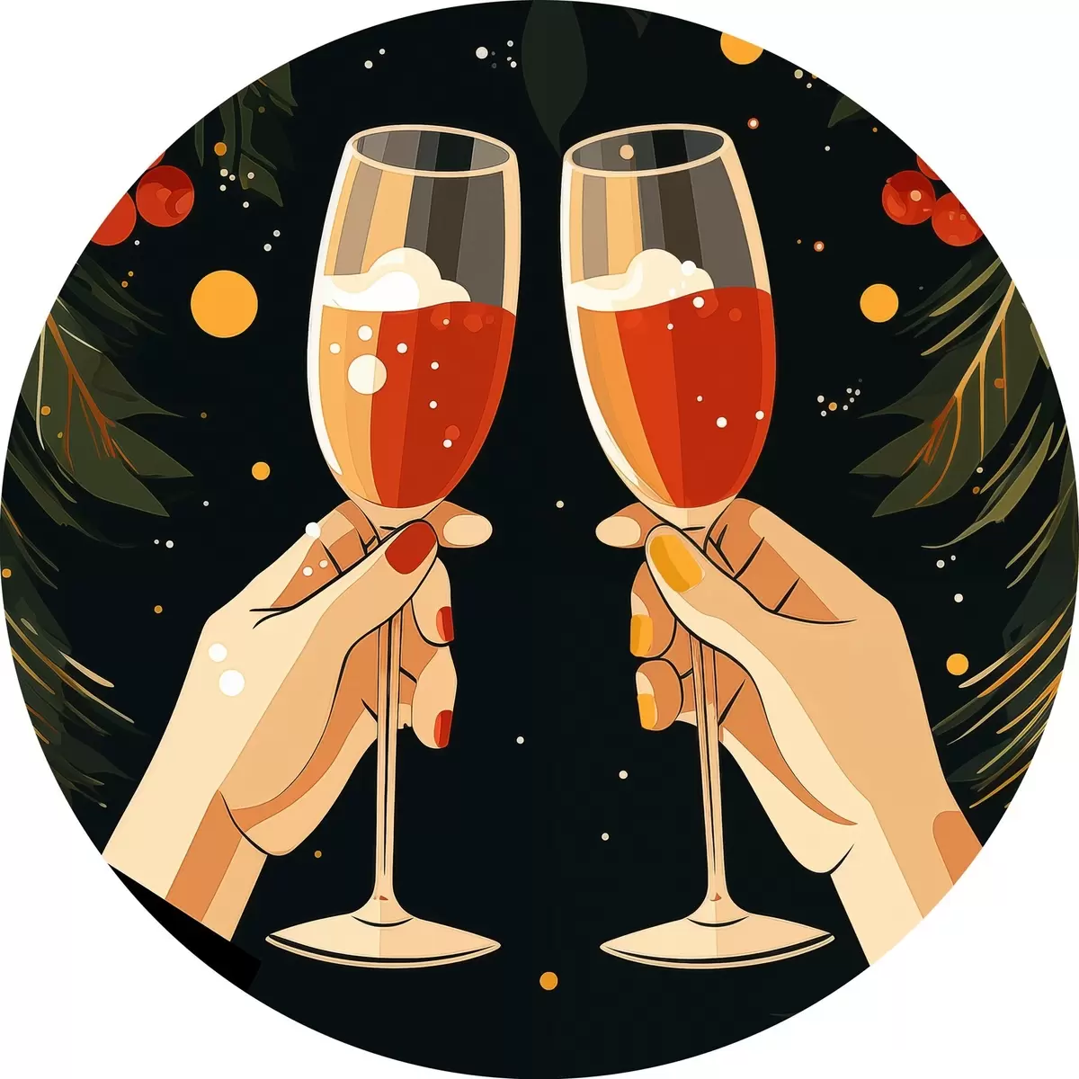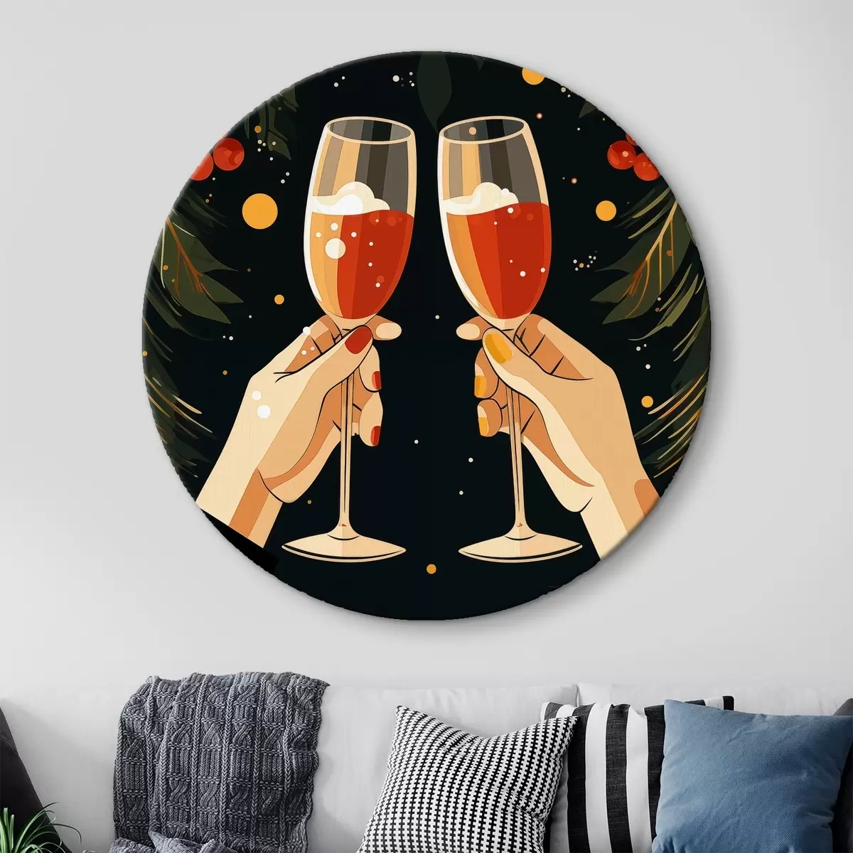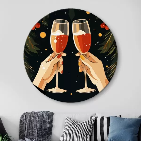 Cuadros redondos Fiestas navideñas, farolillos, cacahuetes, flores, bayas r41375