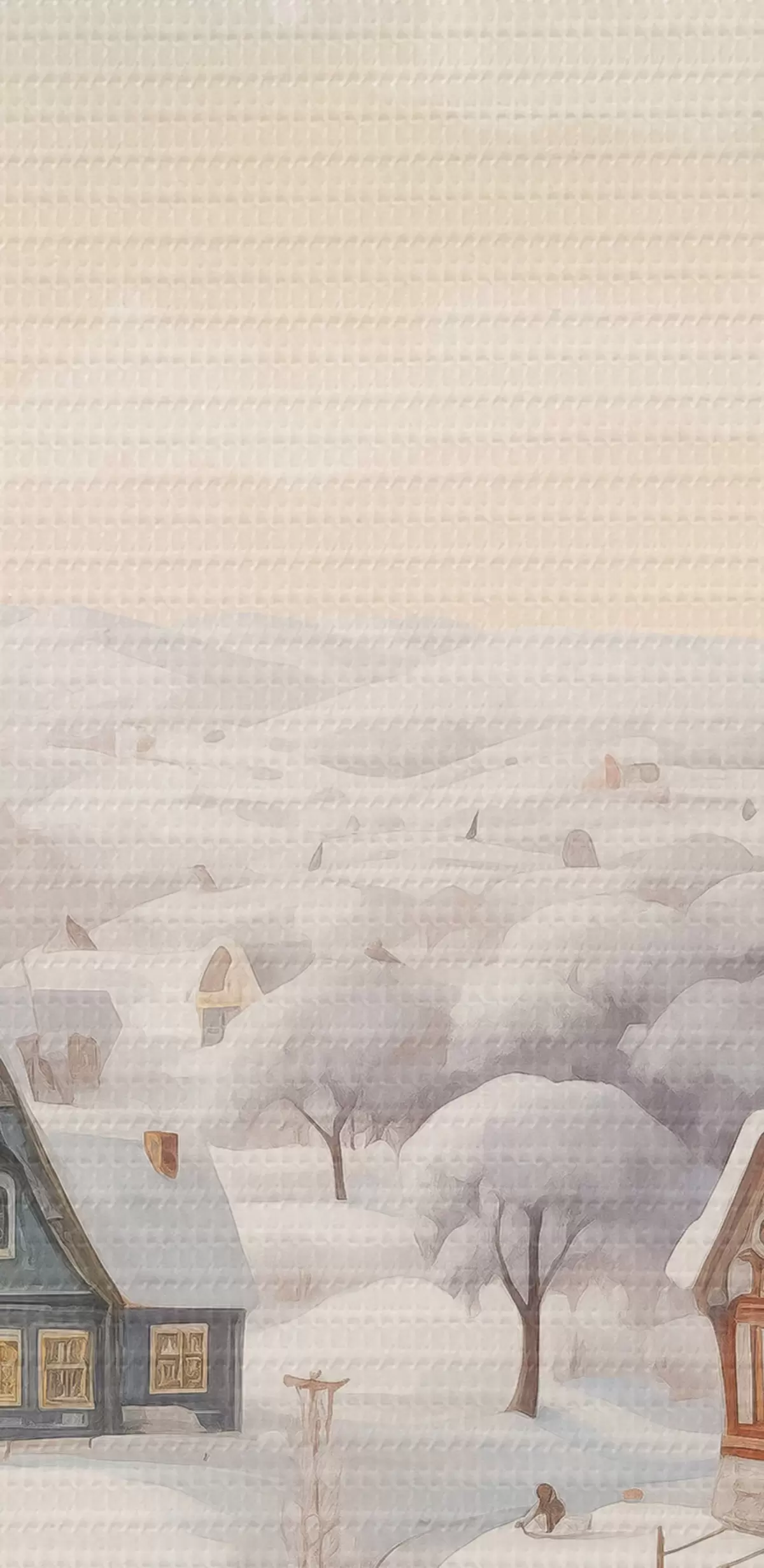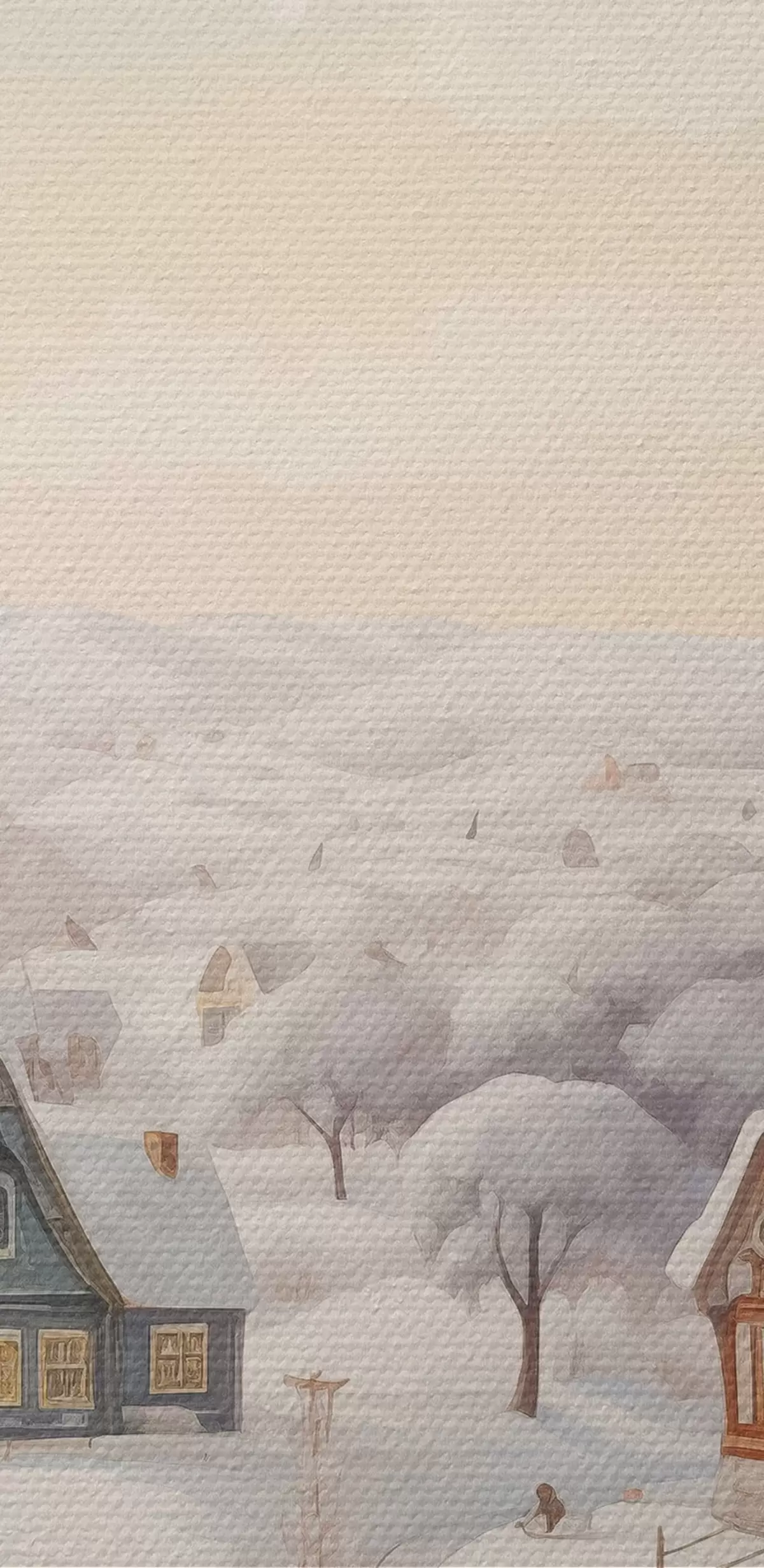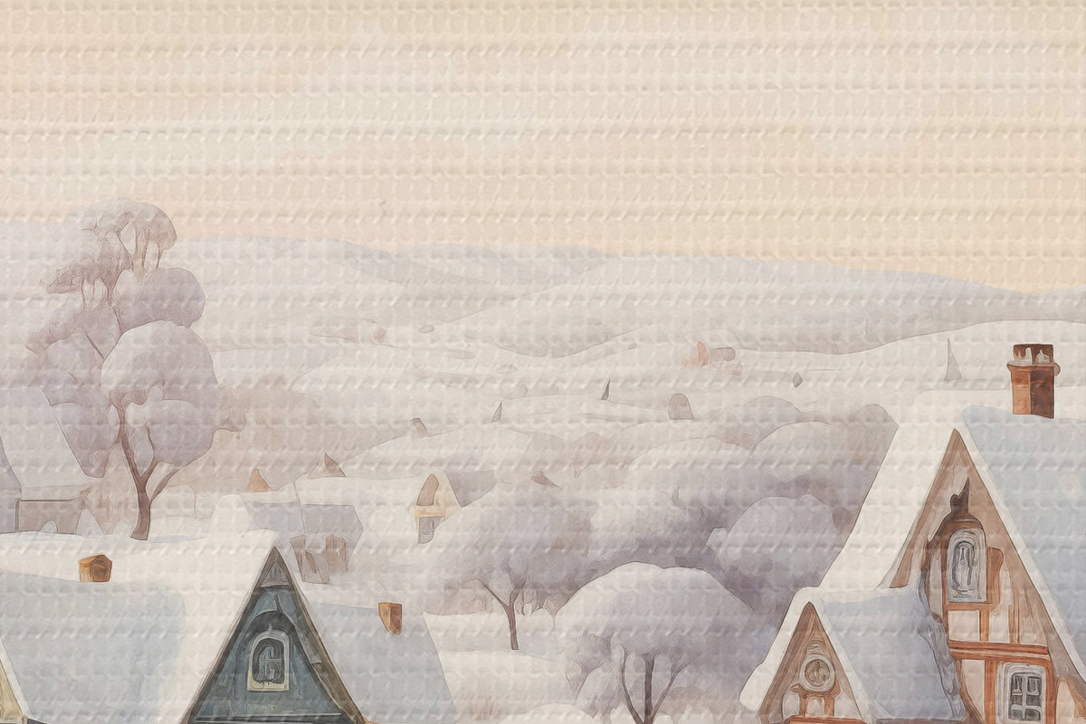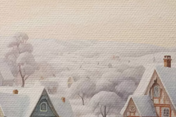 Foto Hermoso paisaje de invierno con pueblo, árboles, casas, acuarela Nr r41379