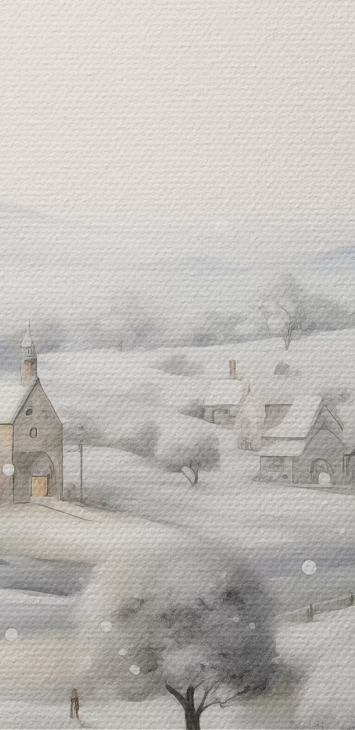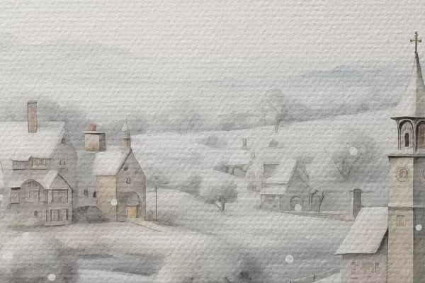 Foto Hermoso pueblo de invierno, árboles, casas, acuarela, montañas Nr r41382