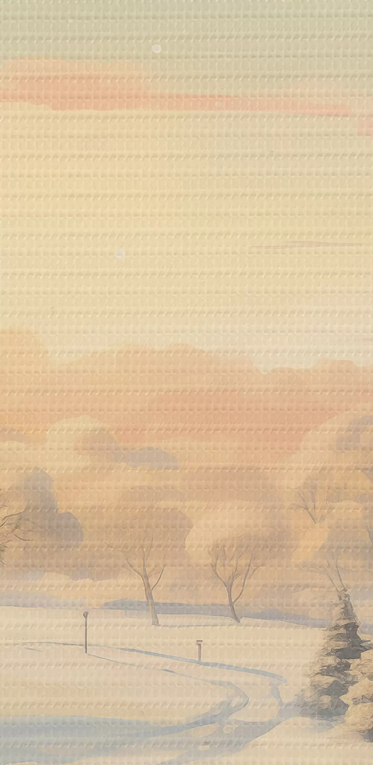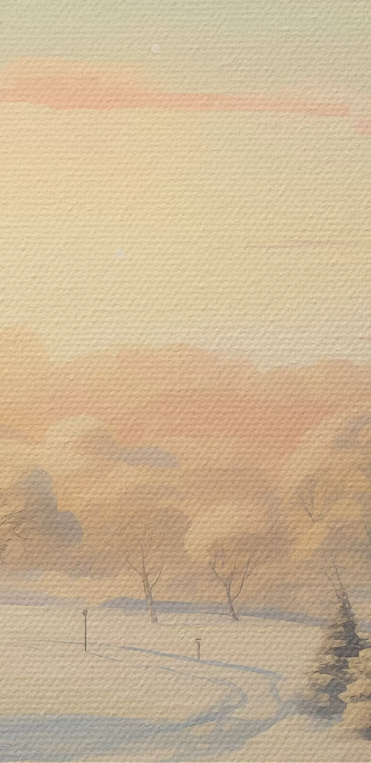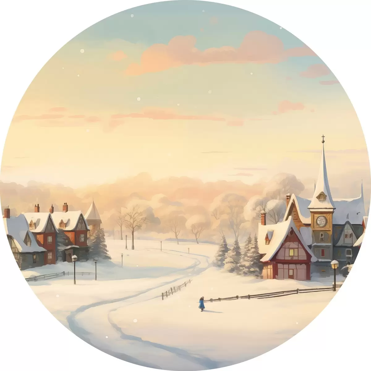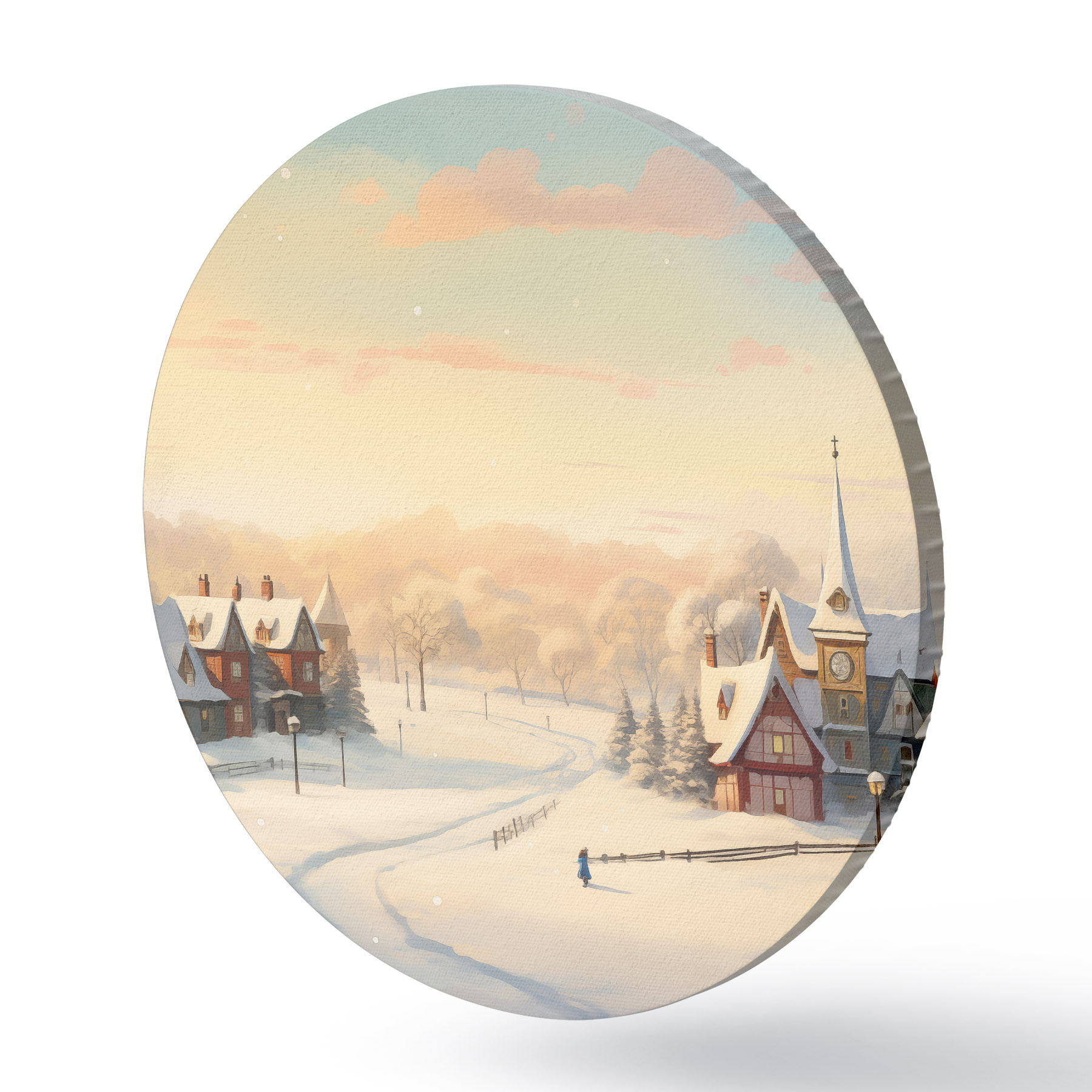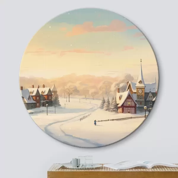 Cuadros redondos País de las maravillas invernal, casas, cielo al atardecer, árboles, acuarela r41383