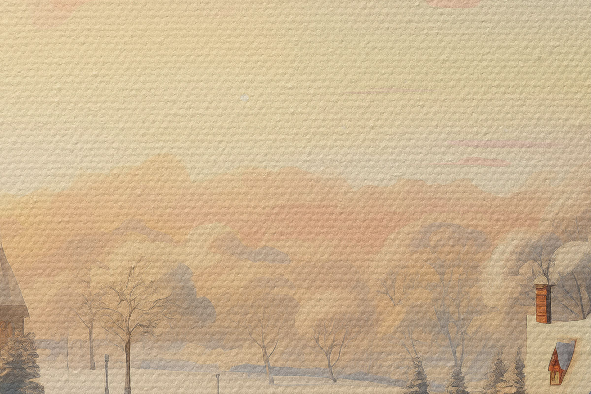 Foto País de las maravillas invernal, casas, cielo al atardecer, árboles, acuarela Nr r41383