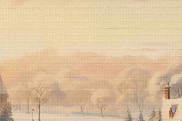 Foto País de las maravillas invernal, casas, cielo al atardecer, árboles, acuarela Nr r41383