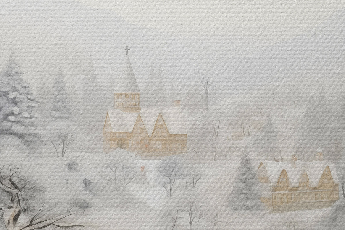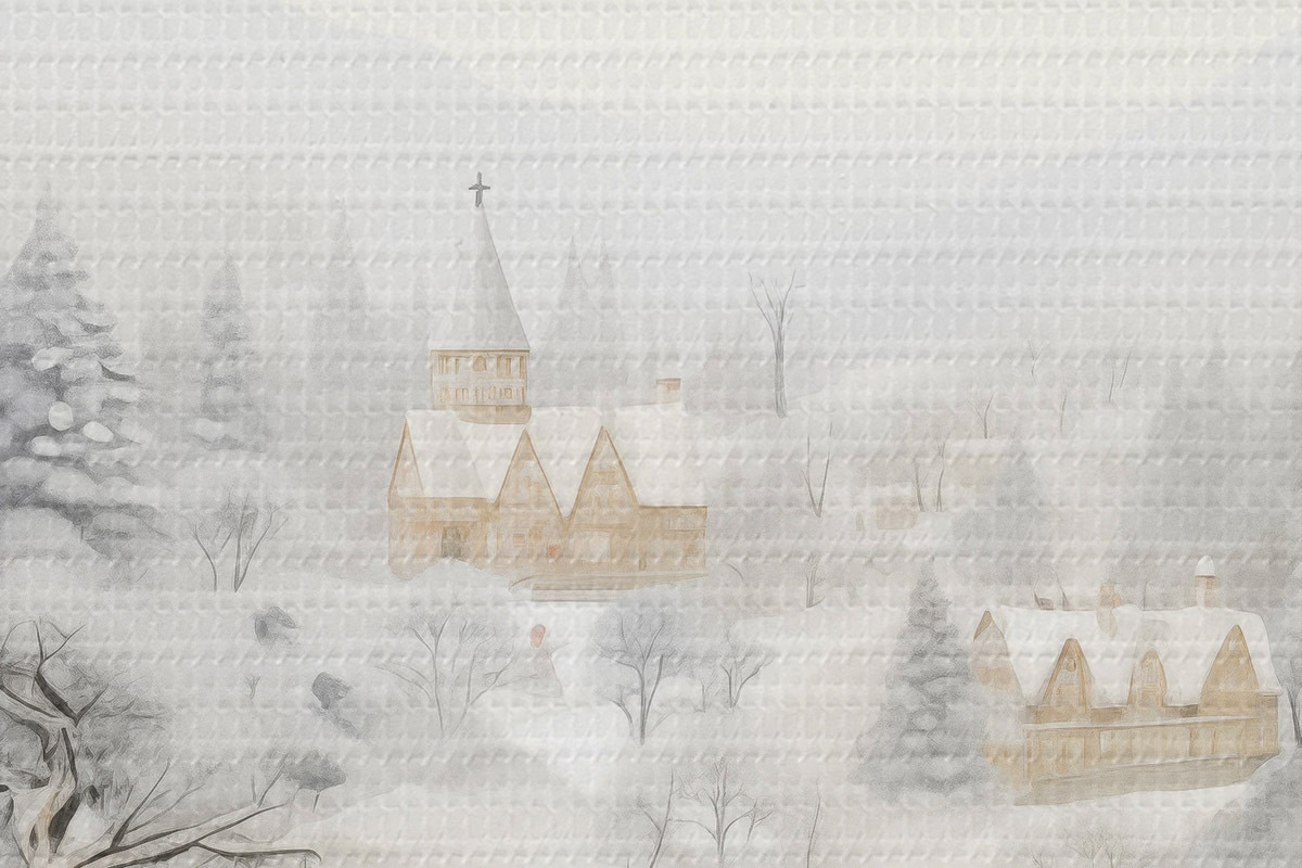 Foto Hermoso paisaje de invierno con pueblo, pinos, casas, montañas Nr r41384