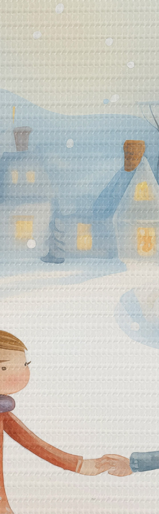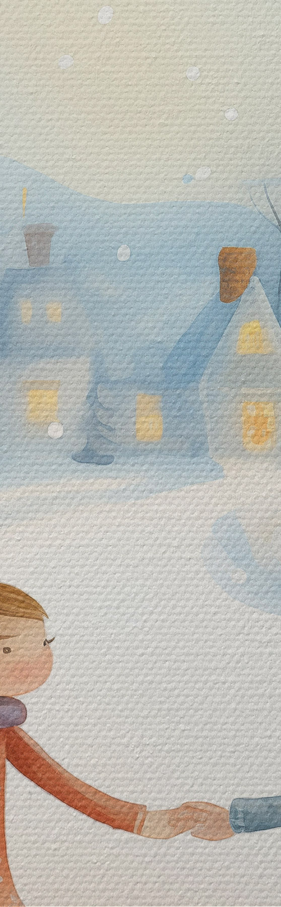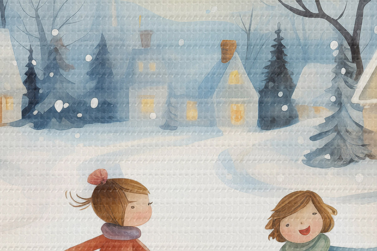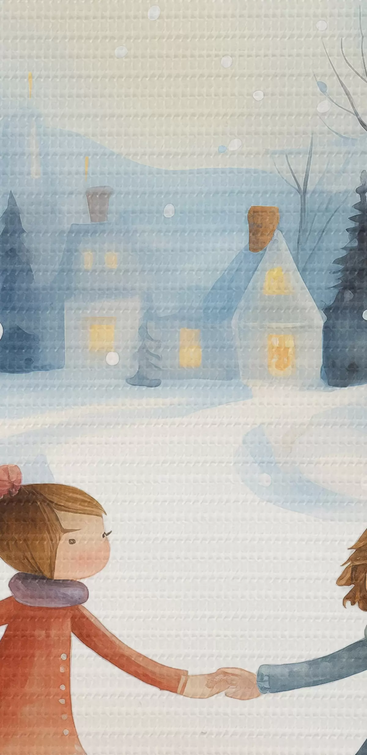Foto Niñas en el pueblo de invierno, copos de nieve, acuarela, casas, bosque Nr r41385