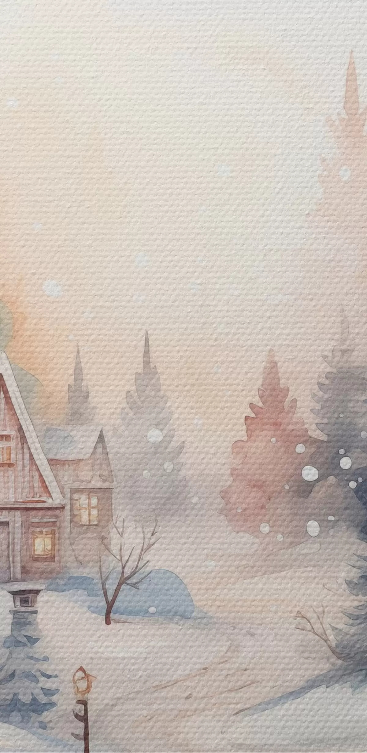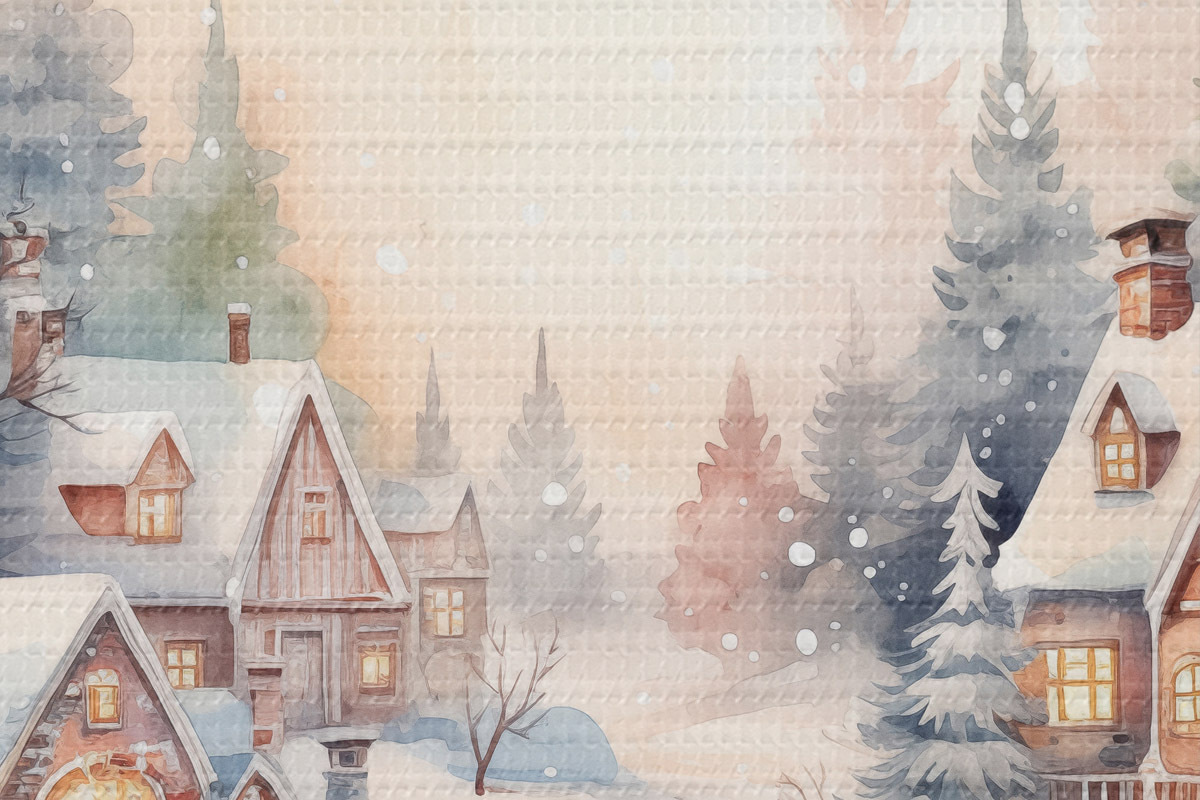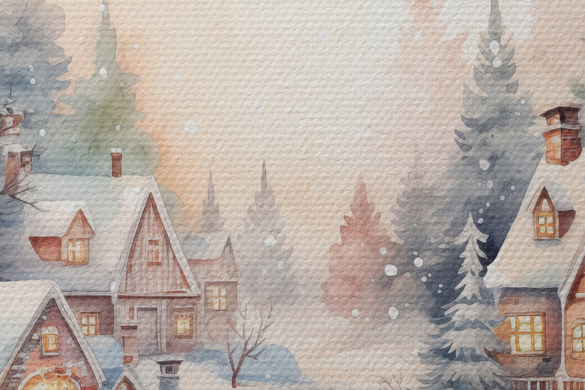 Foto Paisaje de invierno, bosque de pinos, hermosas casas, acuarela, susnet Nr r41390