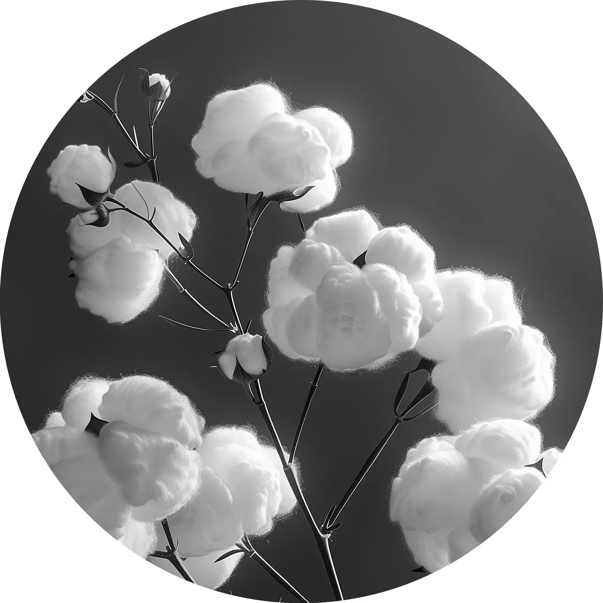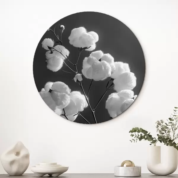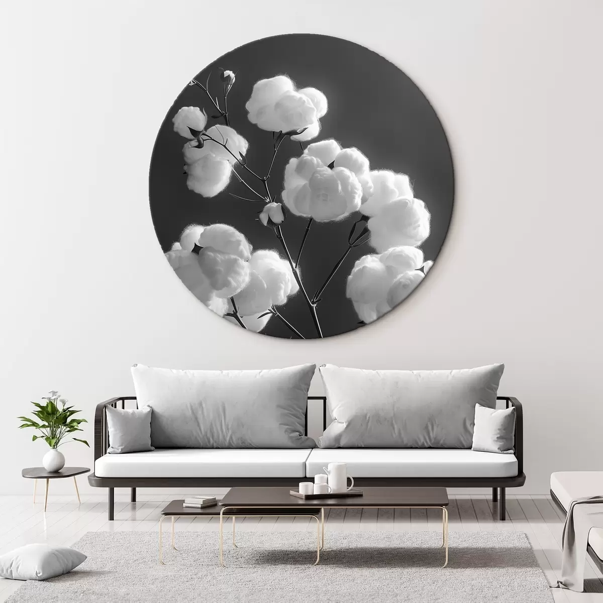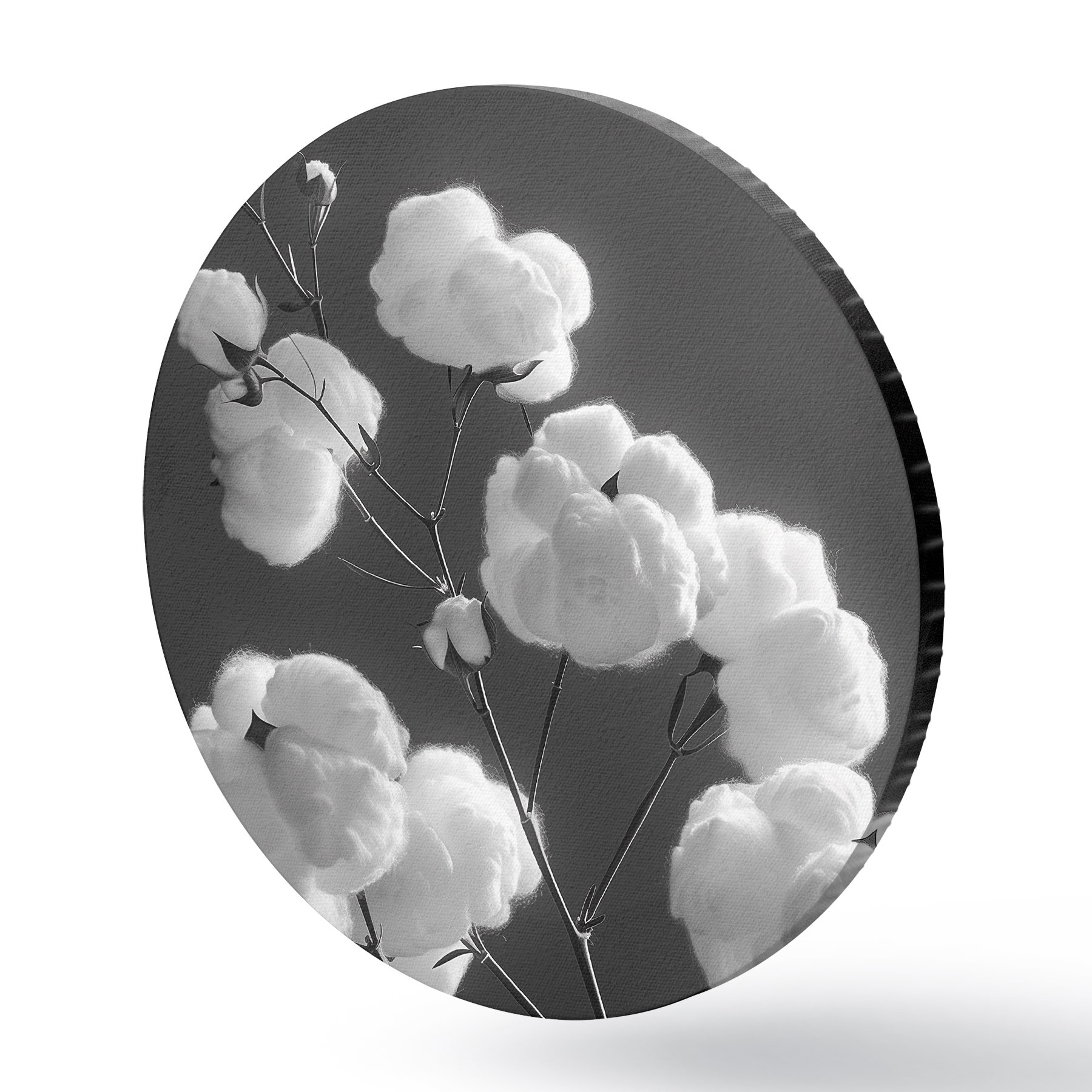 Cuadros redondos Ramas de algodón, versión en blanco y negro r41429