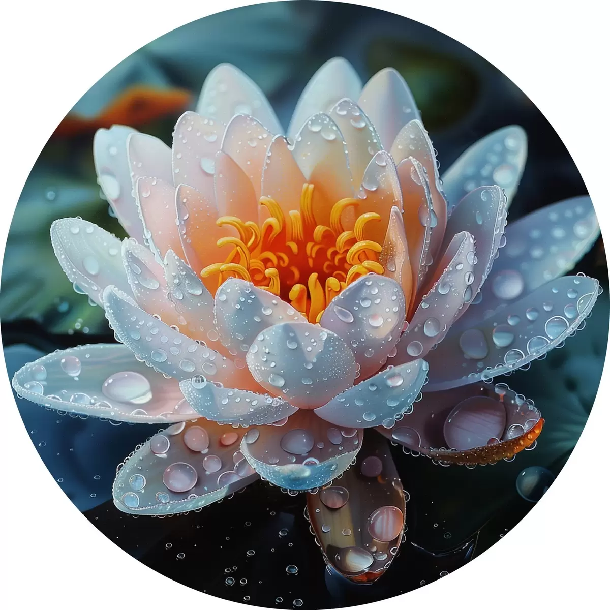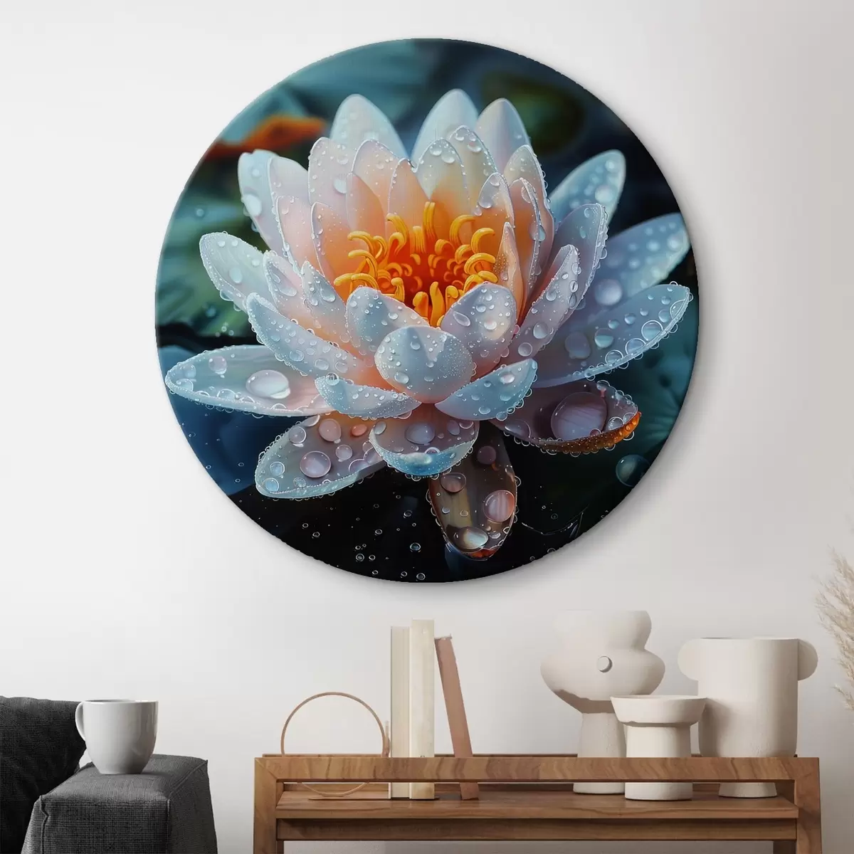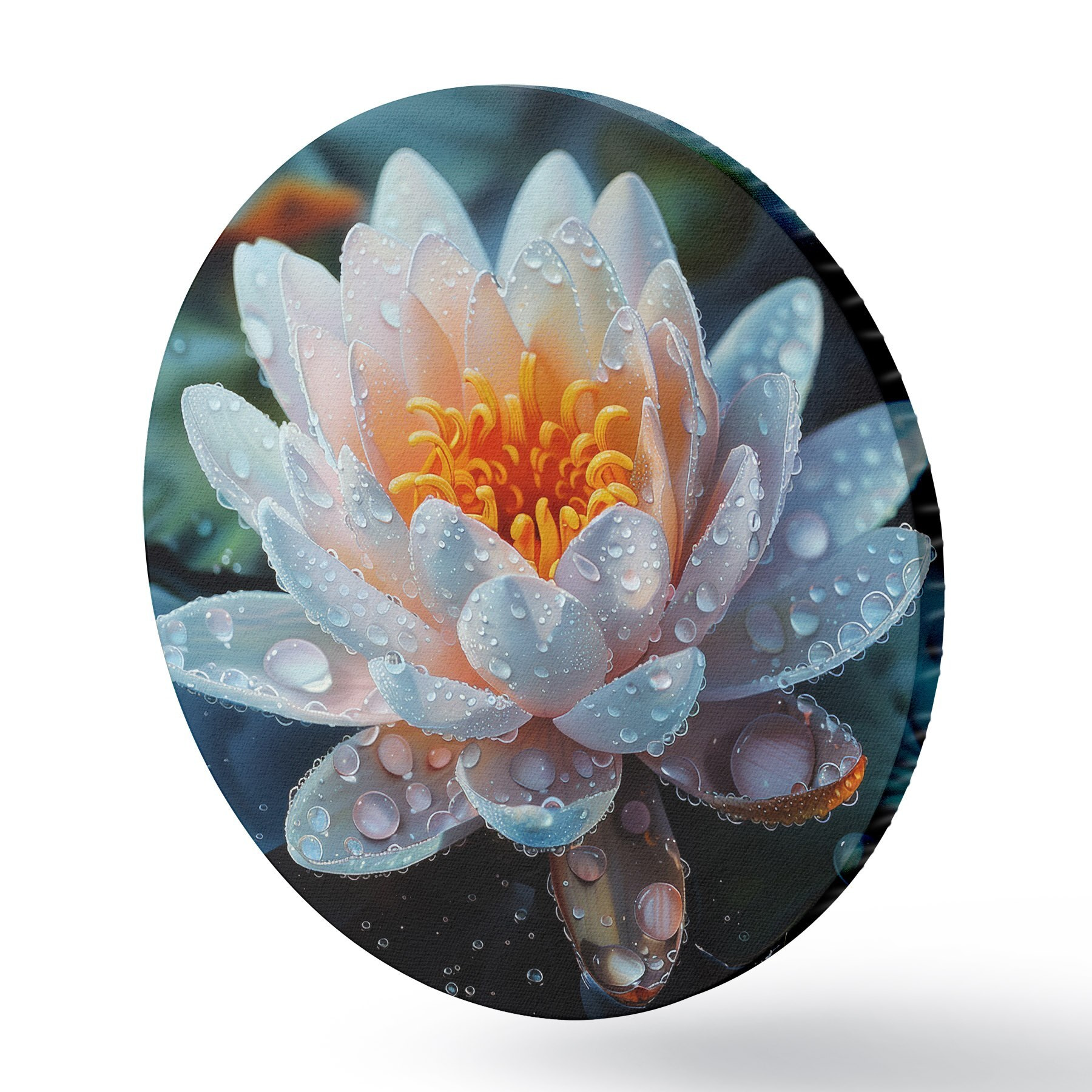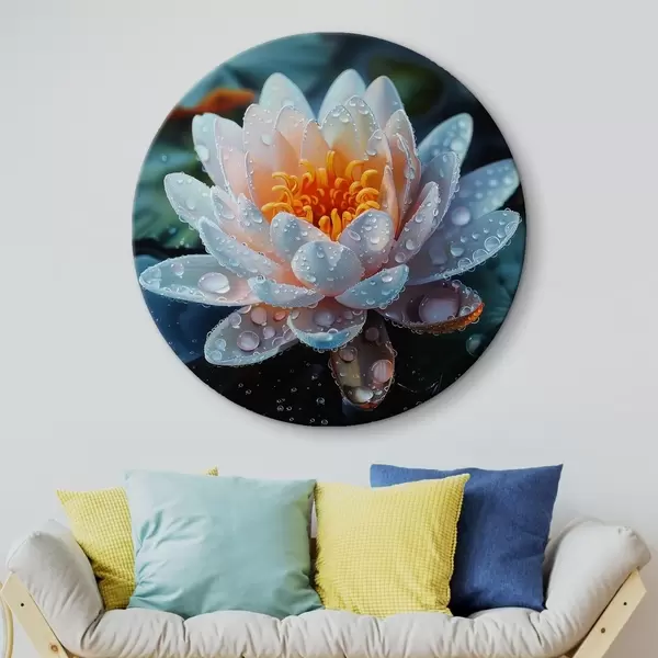 Cuadros redondos Flor de loto con gotas de rocío r41433