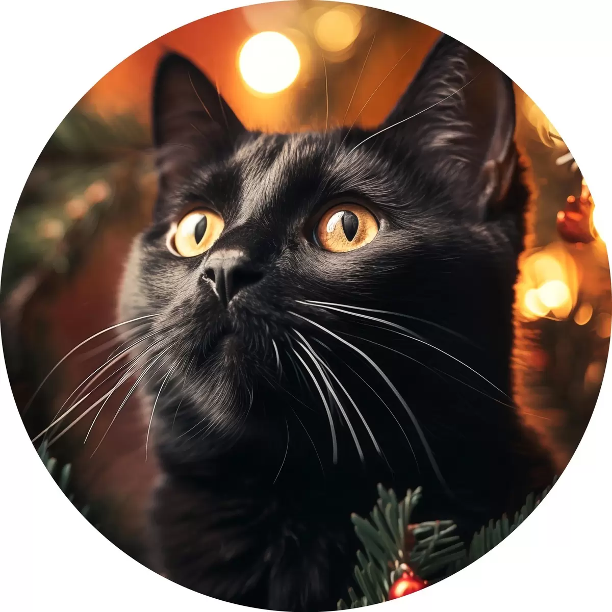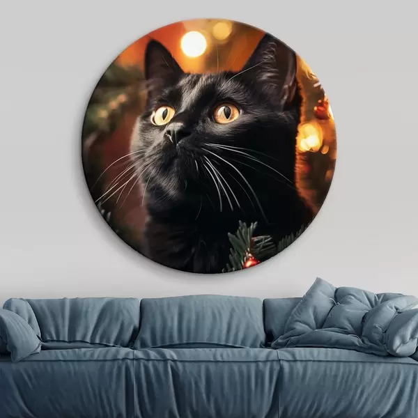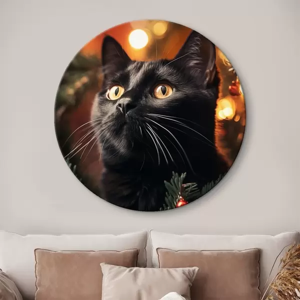 Cuadros redondos Gato negro sobre el fondo de luces de Año Nuevo r41441