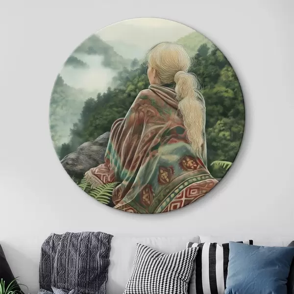 Cuadros redondos Reflexionando en el sereno abrazo de la naturaleza r41454