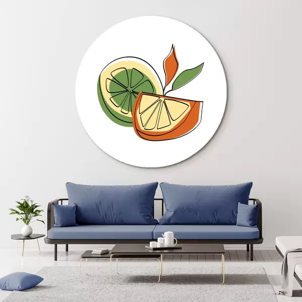 Cuadros redondos Citrus dibujo lineal, abstracción r41468