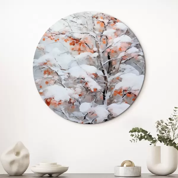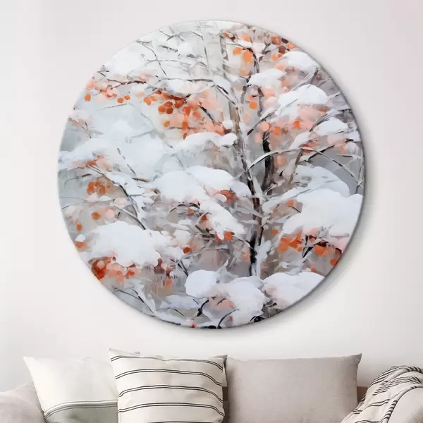 Cuadros redondos Árbol con bayas bajo la nieve r41477