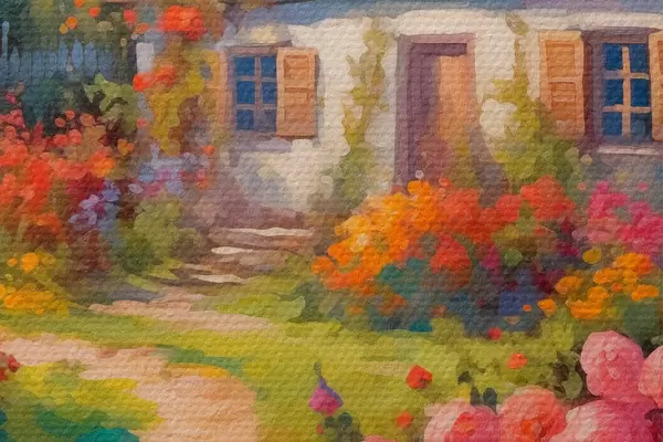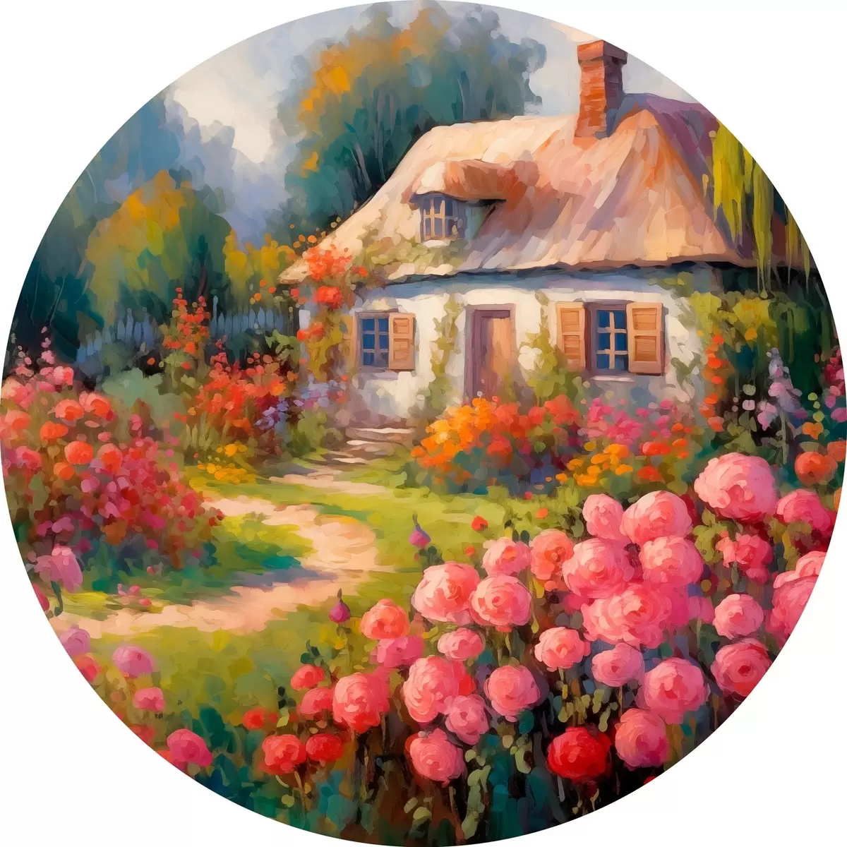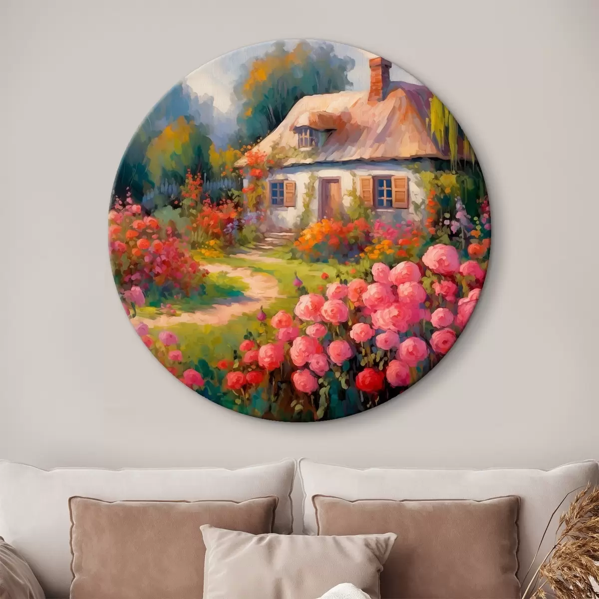Cuadros redondos Una casa en un jardín de rosas r41491