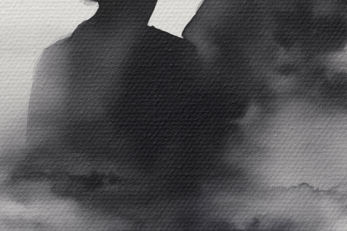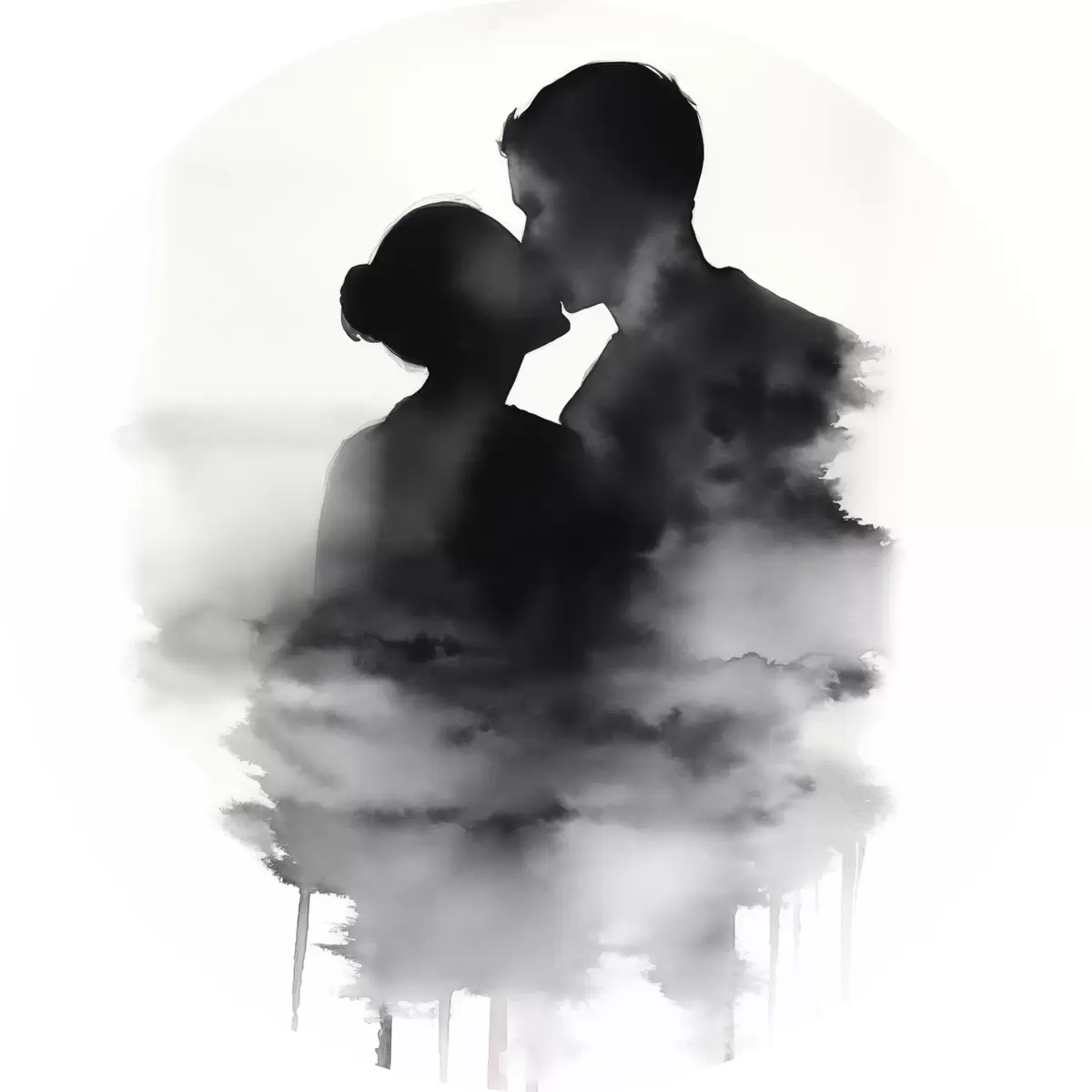 Foto Silueta de una pareja en técnica de acuarela en blanco y negro Nr r41496