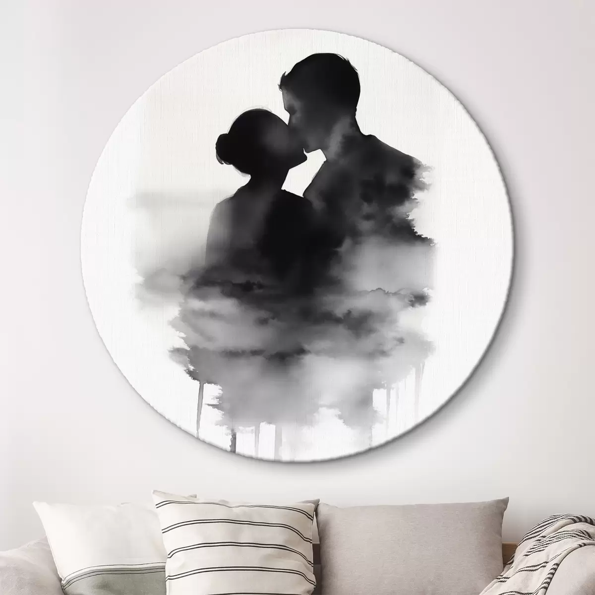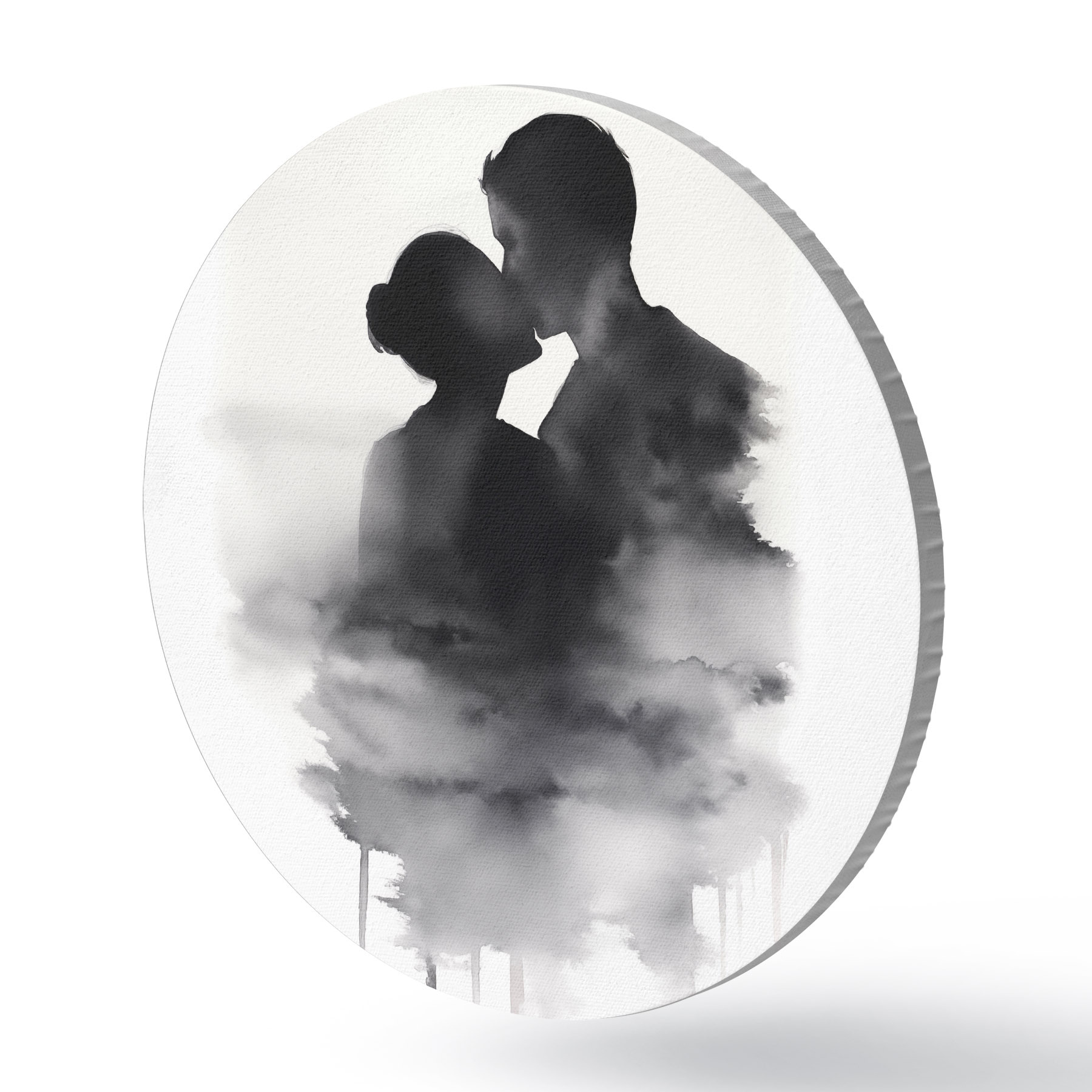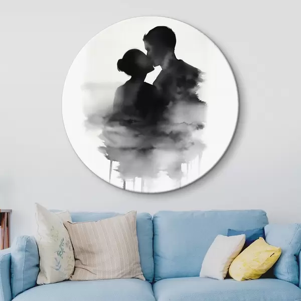 Cuadros redondos Silueta de una pareja en técnica de acuarela en blanco y negro r41496
