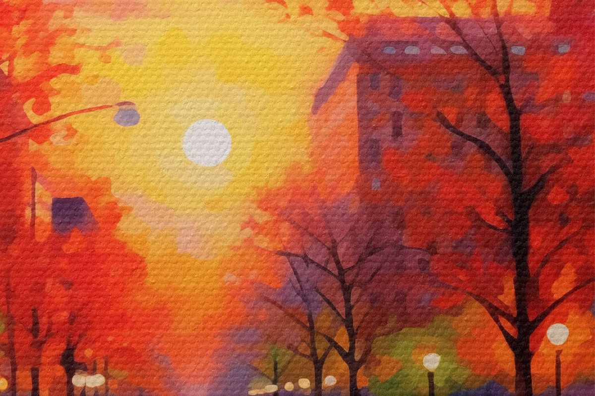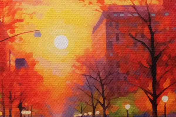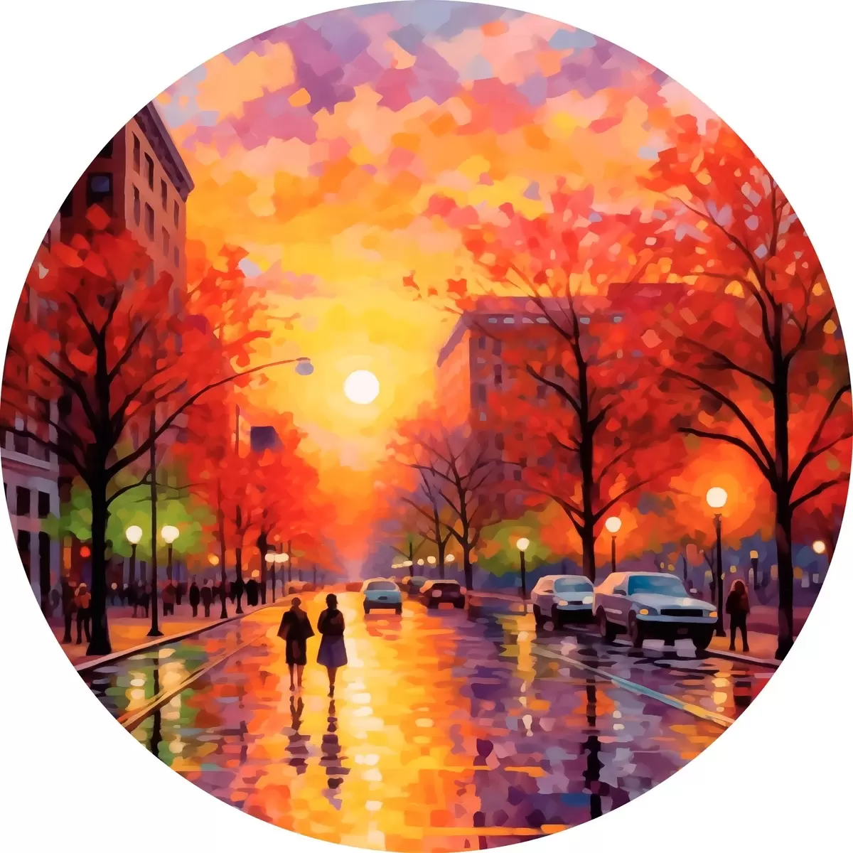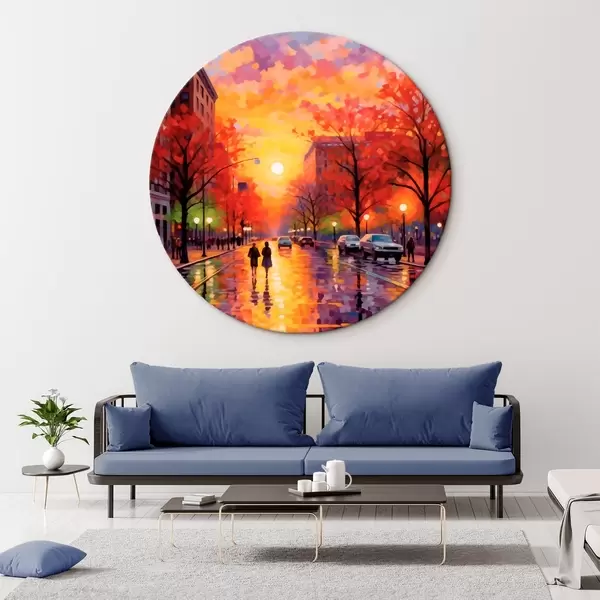 Cuadros redondos Atardecer otoñal en la ciudad r41499