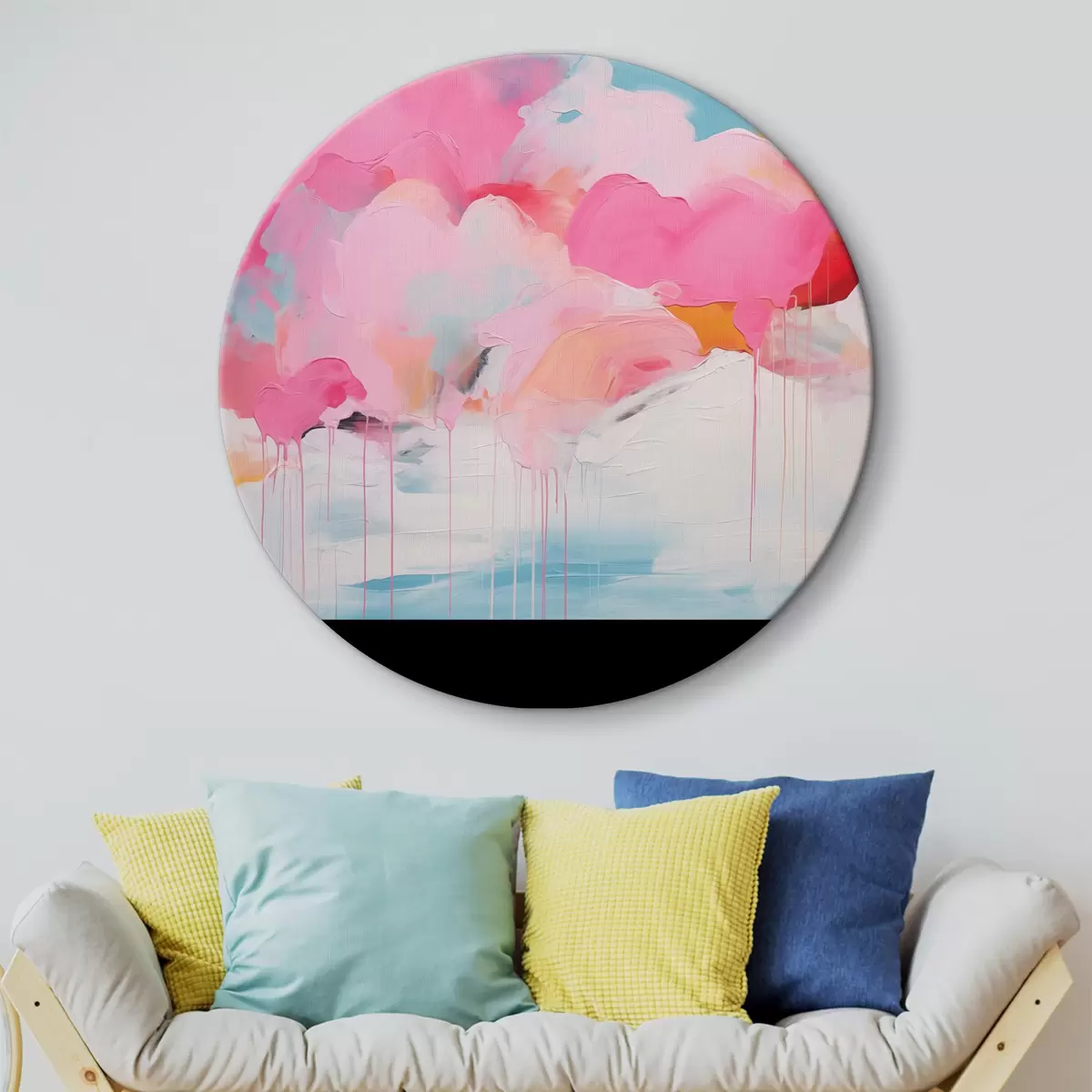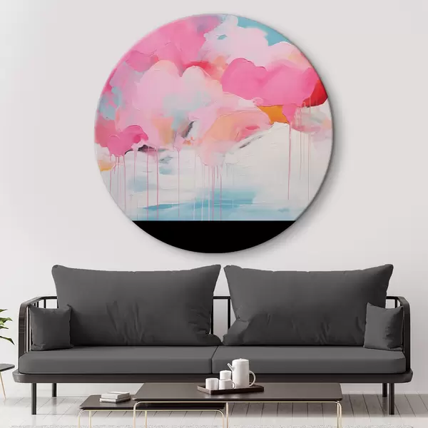 Cuadros redondos Nubes rosas, abstracción brillante con líneas suaves r41502