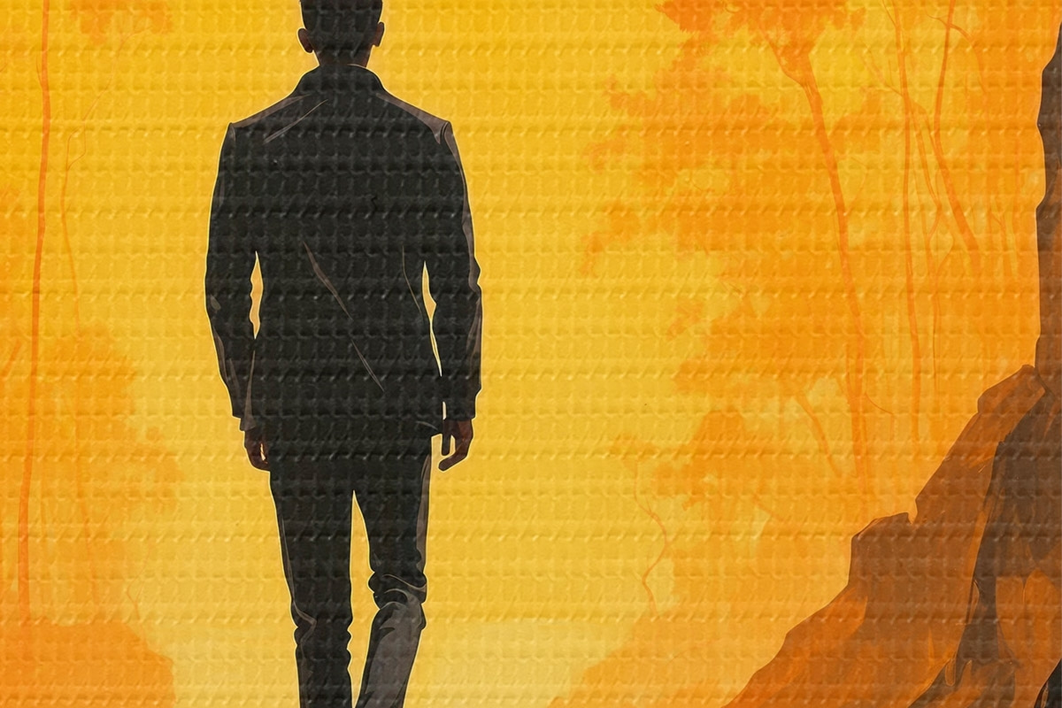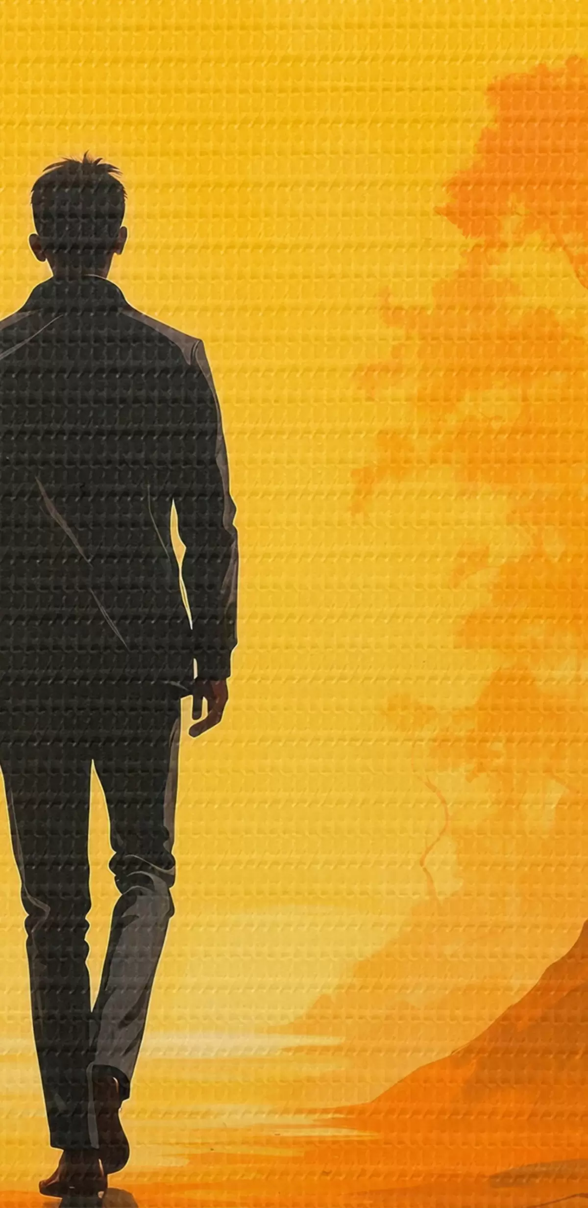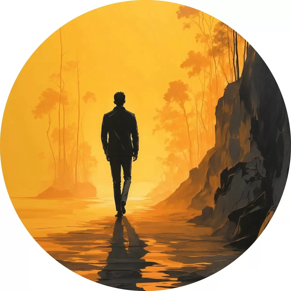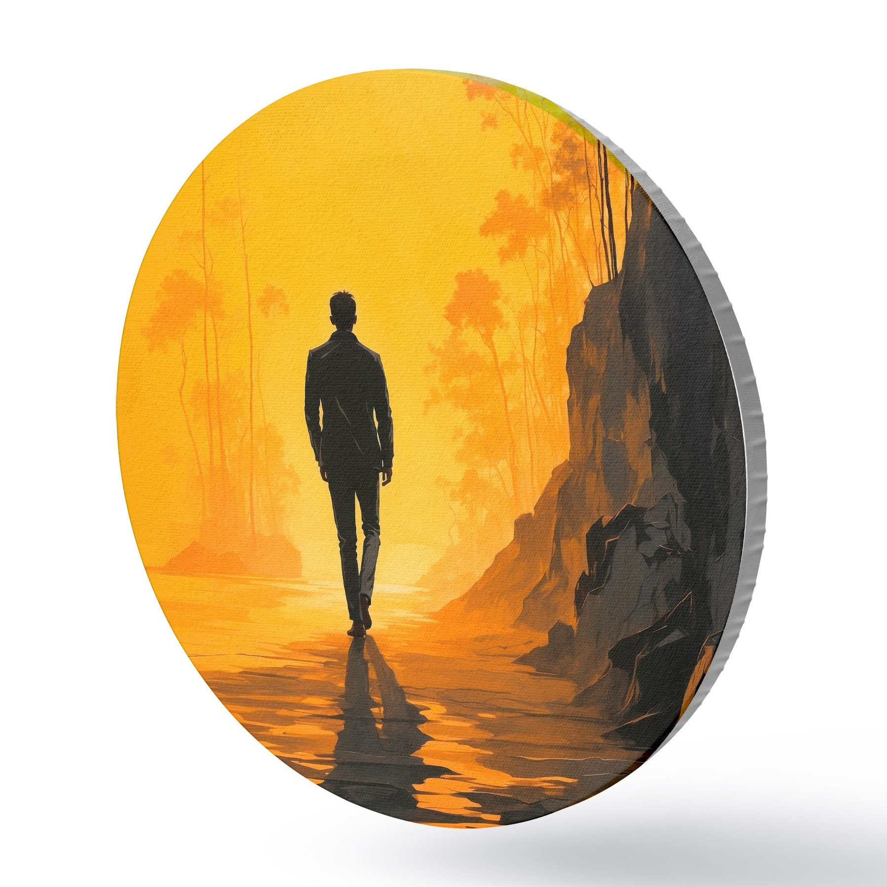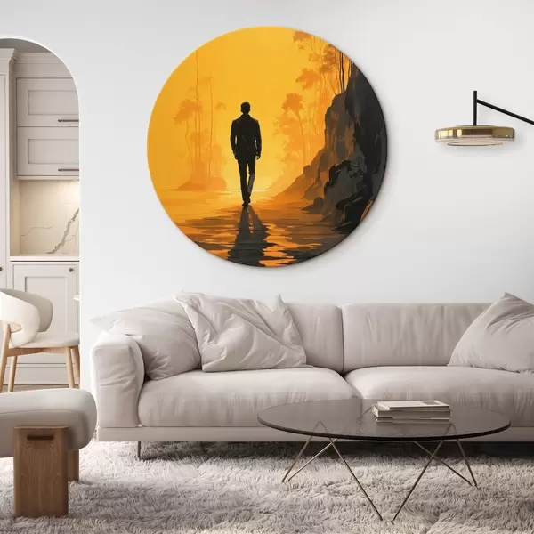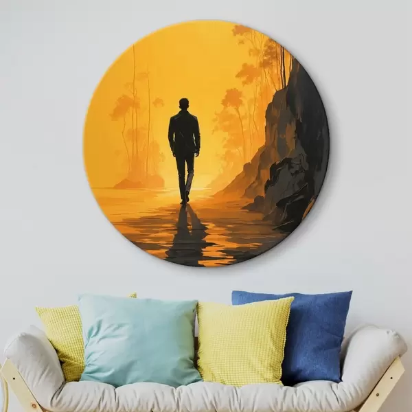 Cuadros redondos Hombre caminando hacia el sol r41767