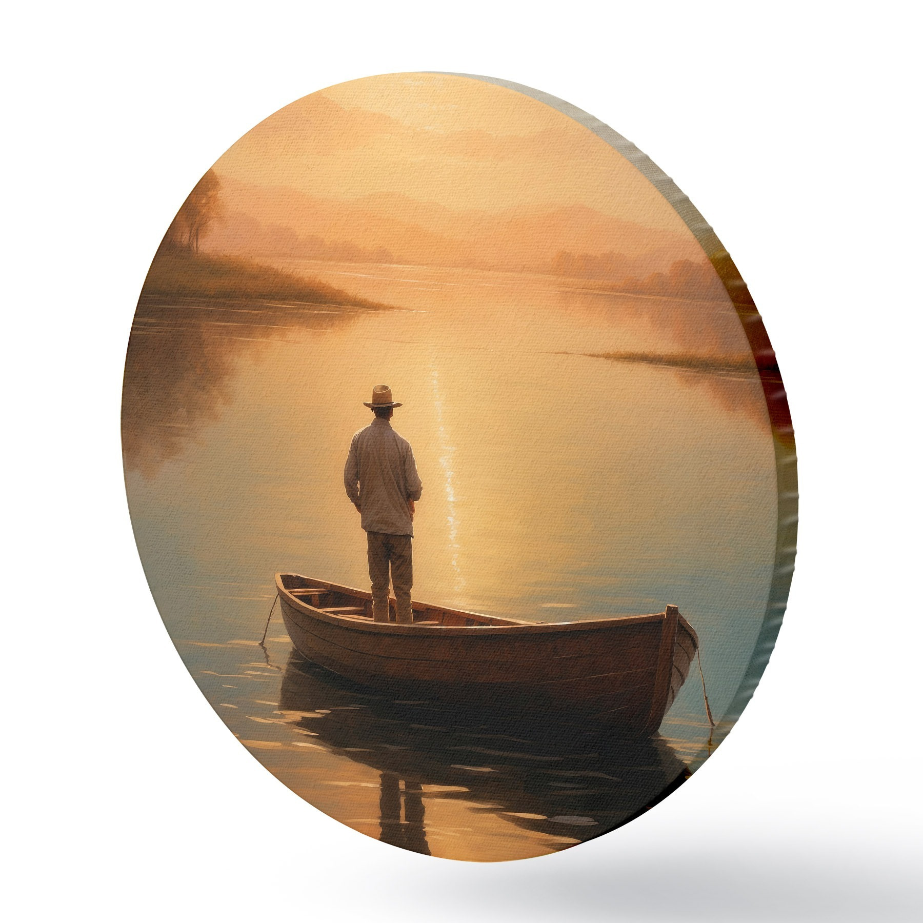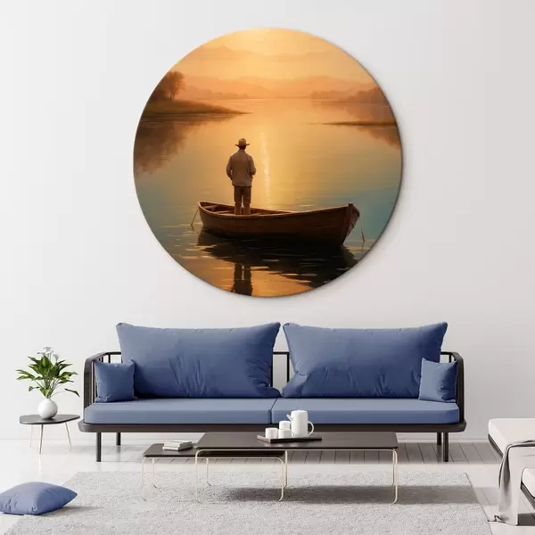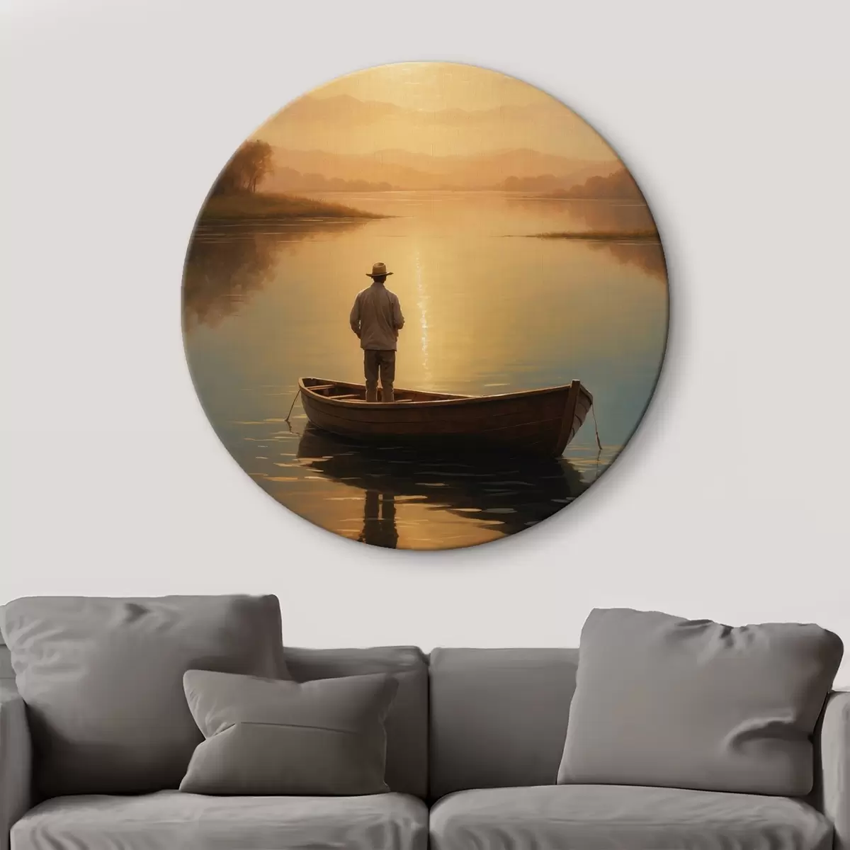 Cuadros redondos Hombre en una barca en medio de un lago r41770