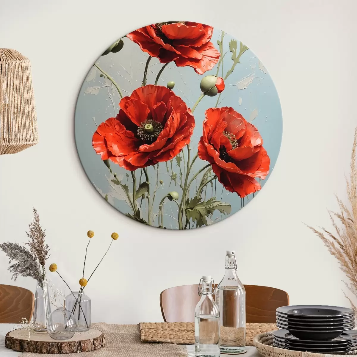 Cuadros redondos Amapolas sobre fondo azul r41773