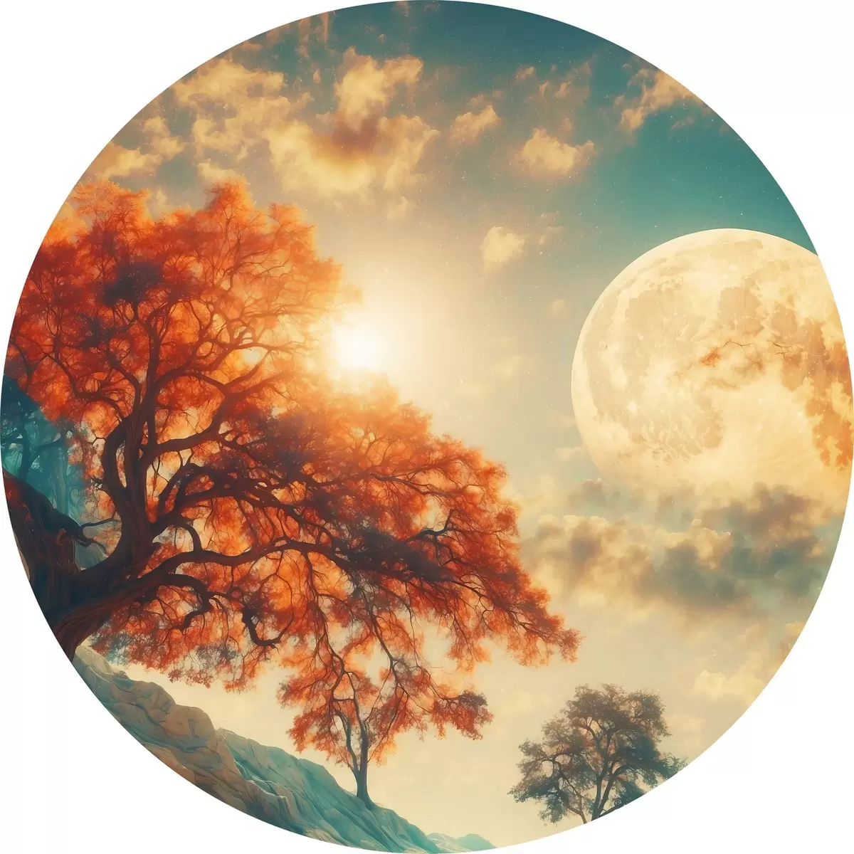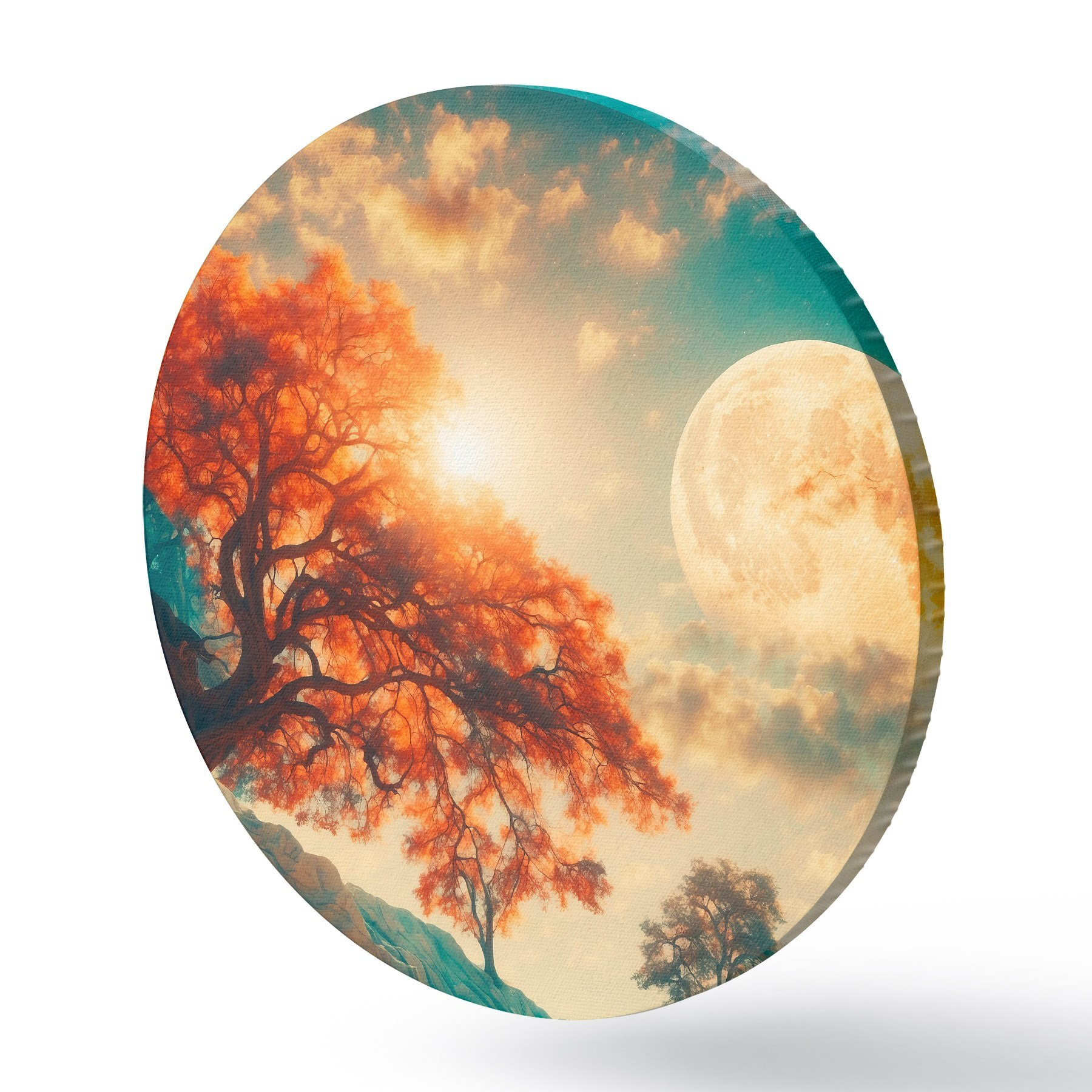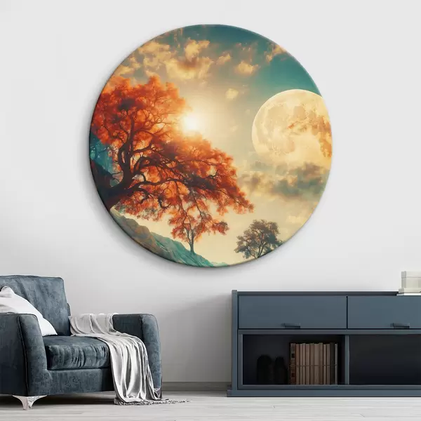 Cuadros redondos Árboles y montañas sobre un enorme fondo lunar r41774