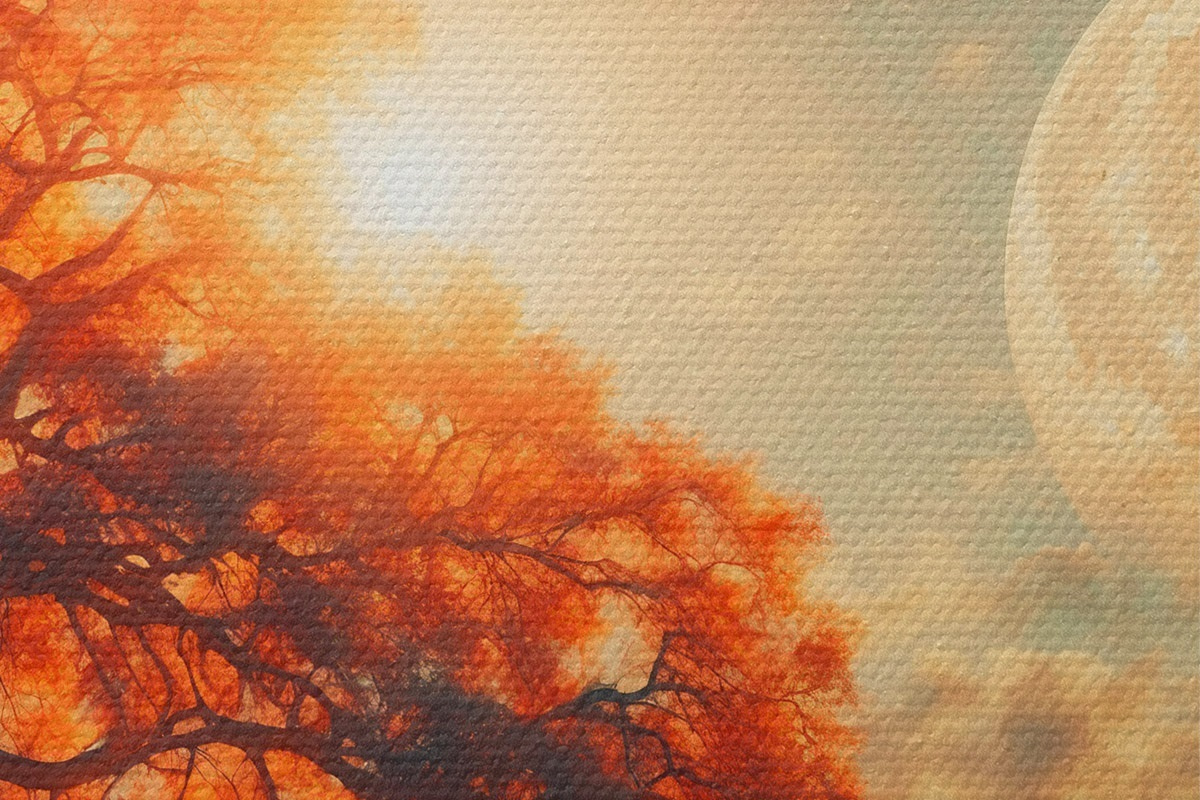 Foto Árboles y montañas sobre un enorme fondo lunar Nr r41774