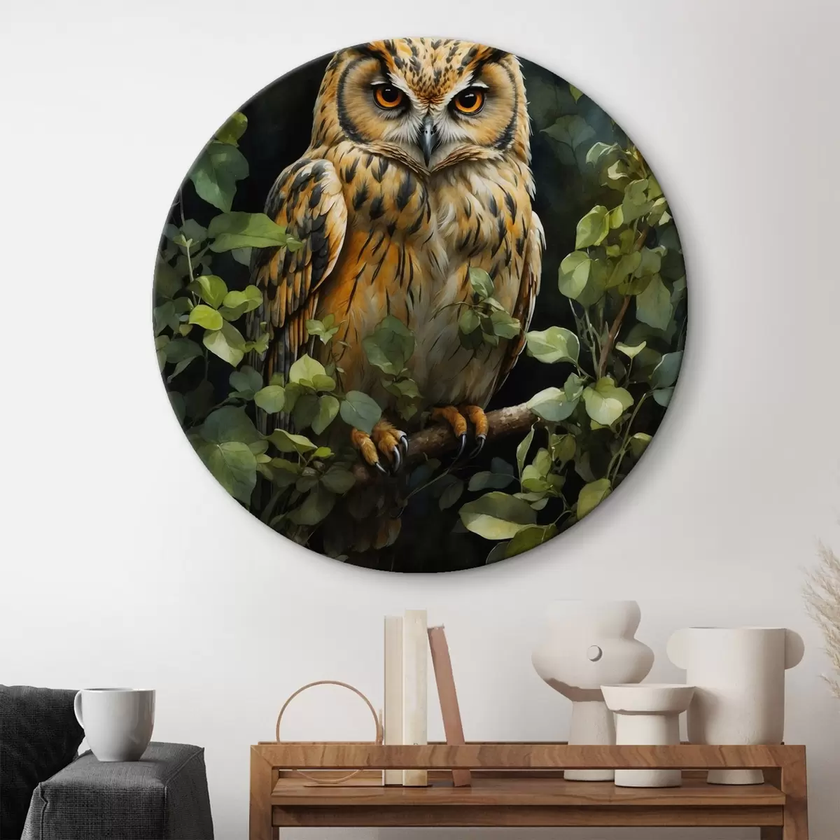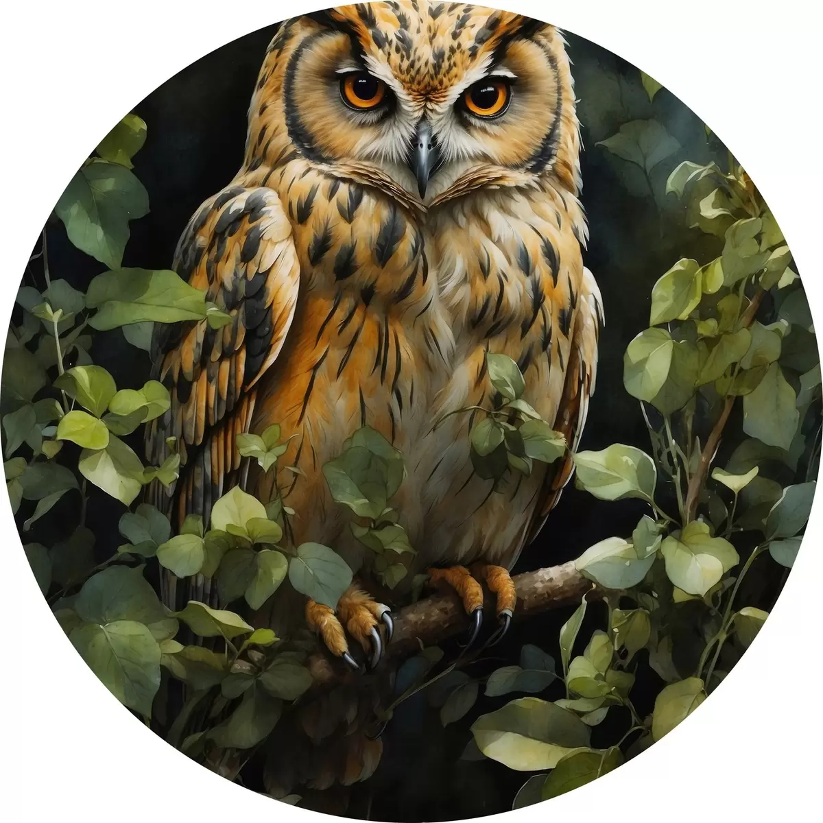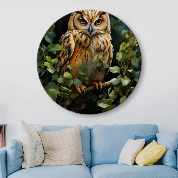Cuadros redondos Búho en una rama r41776