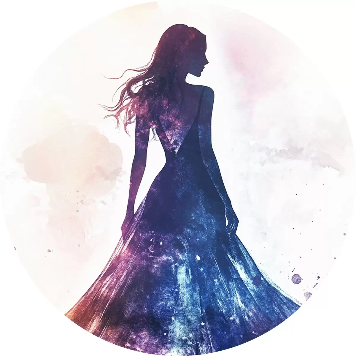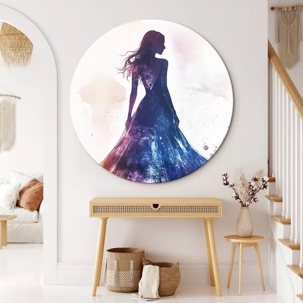 Cuadros redondos Silueta de una niña en estilo acuarela r42078