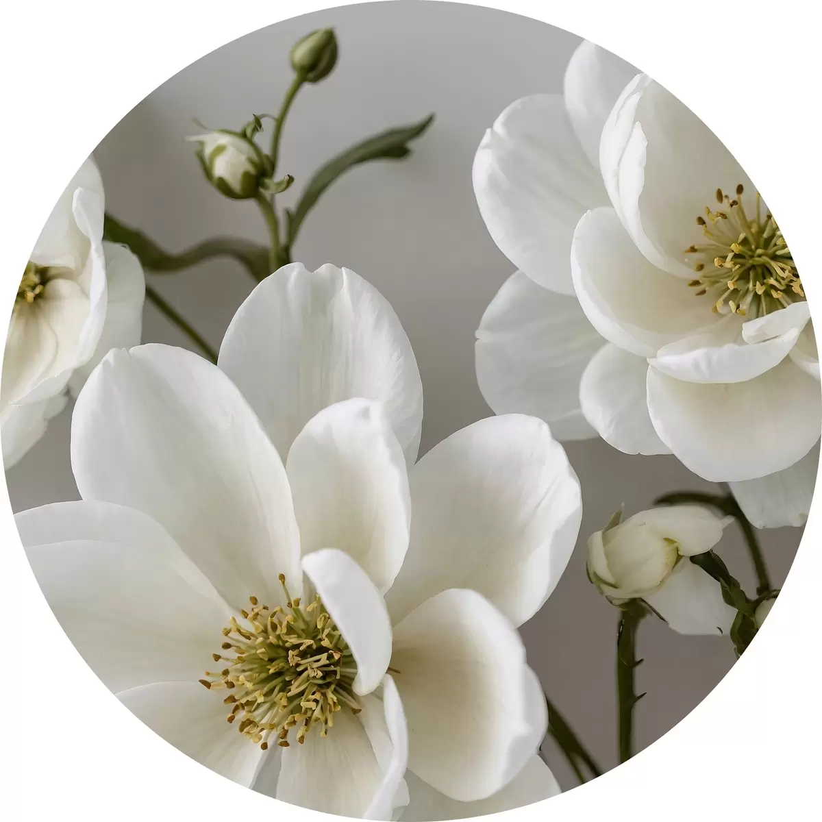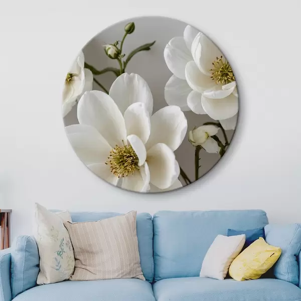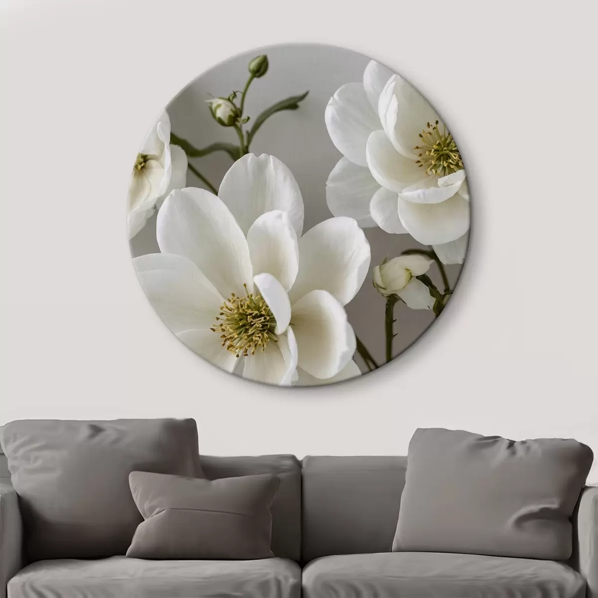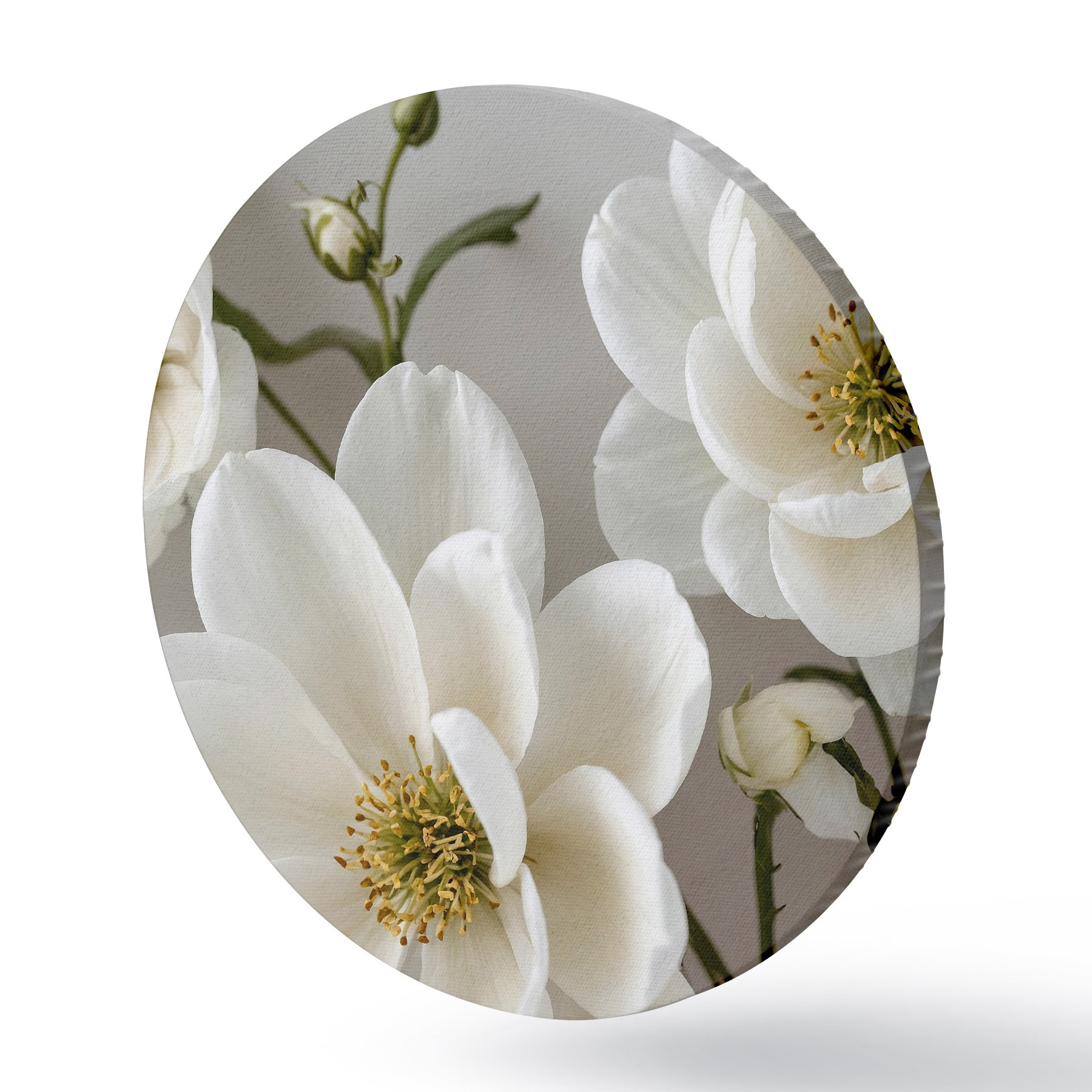Cuadros redondos Flores y tallos blancos sobre fondo claro r42097