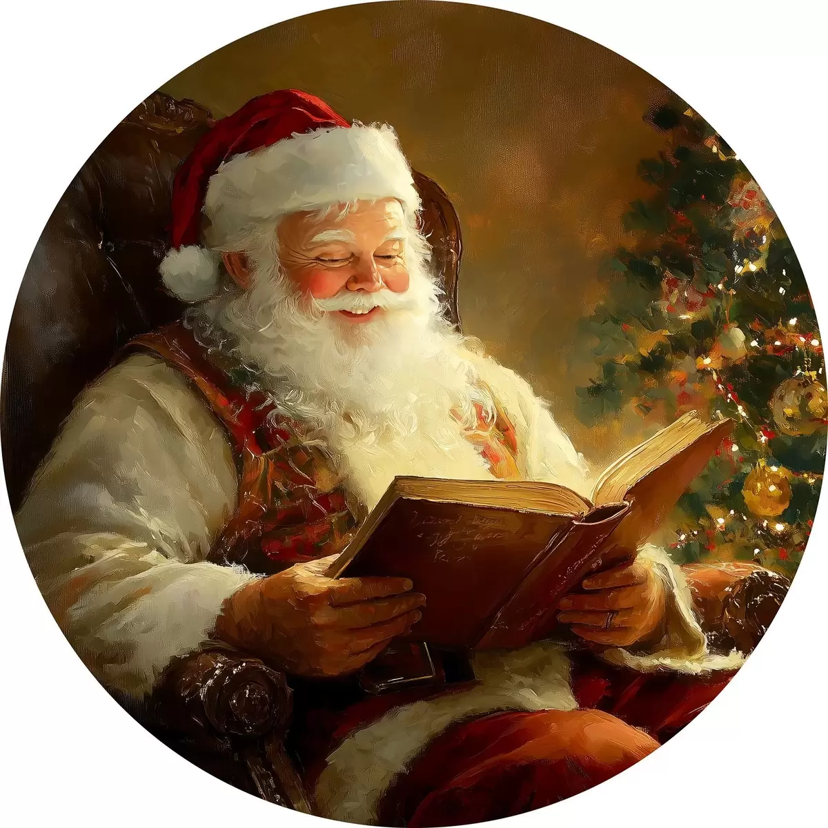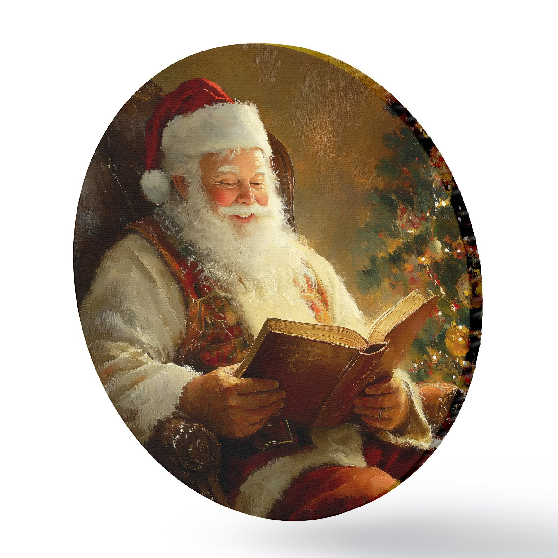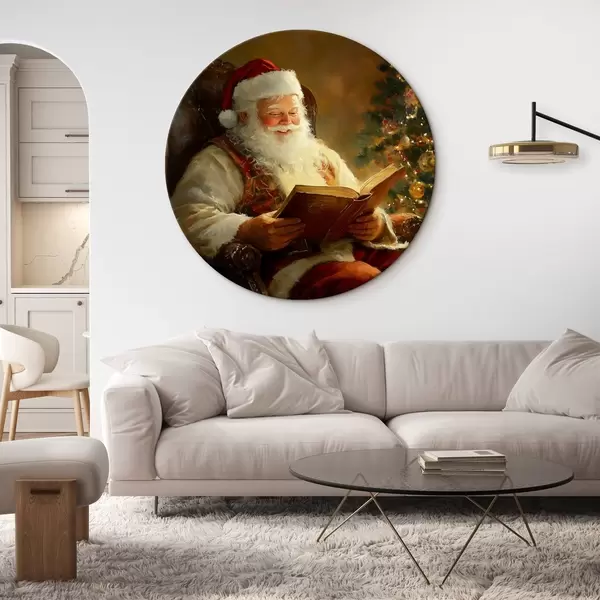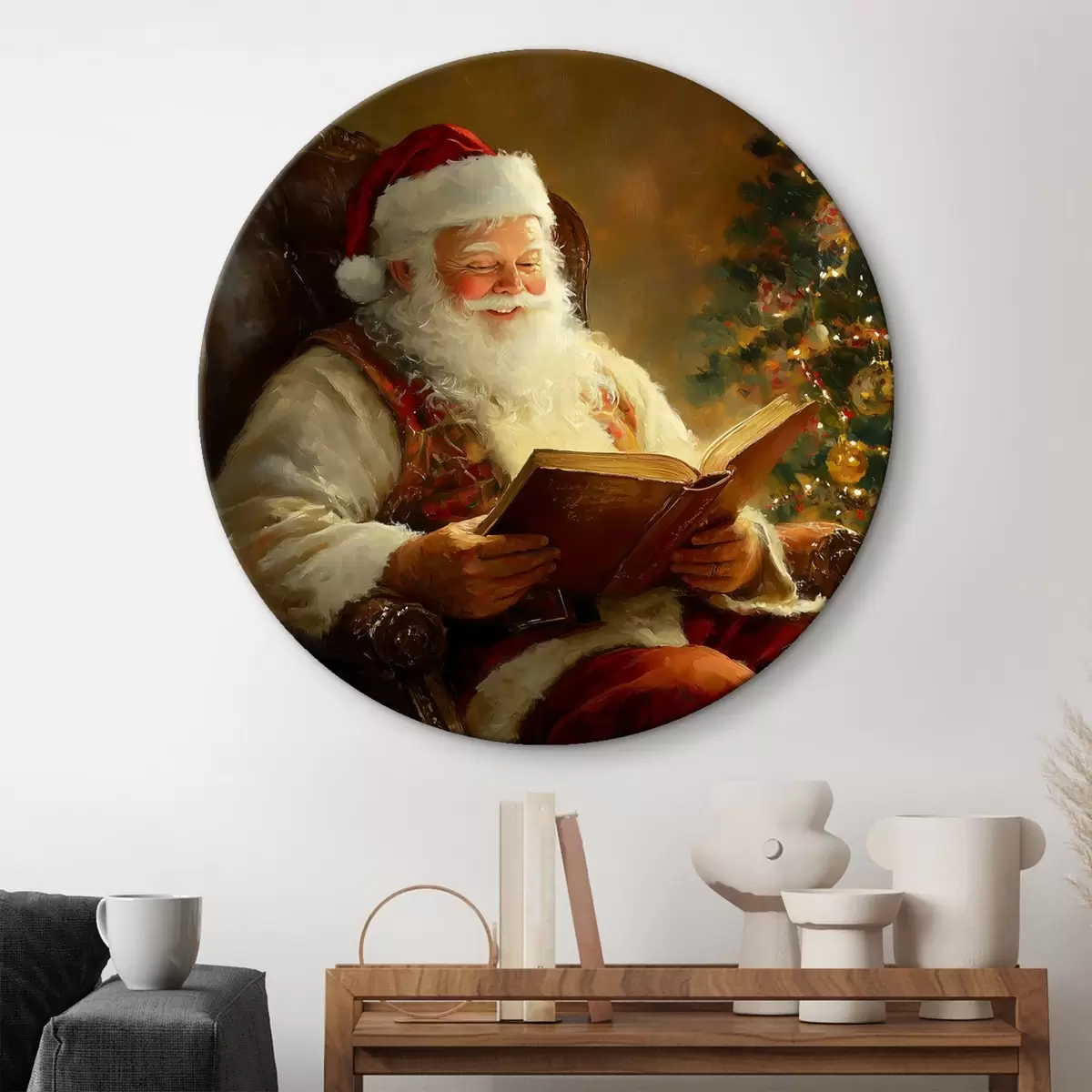 Cuadros redondos Papá Noel está leyendo un libro cerca del árbol de Navidad r42100