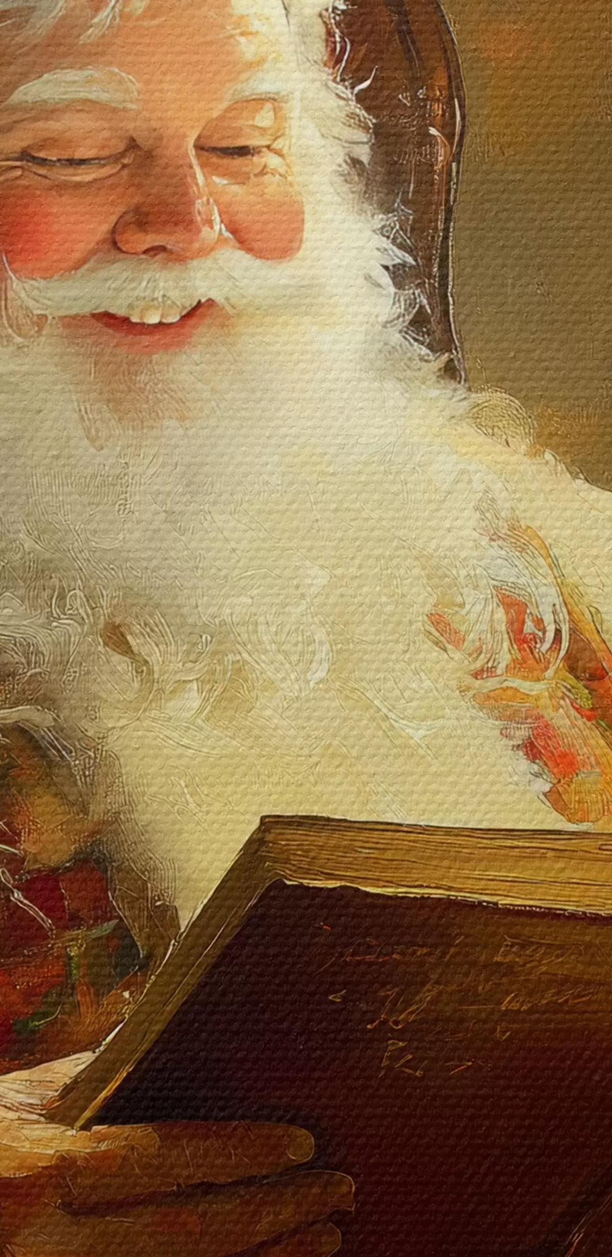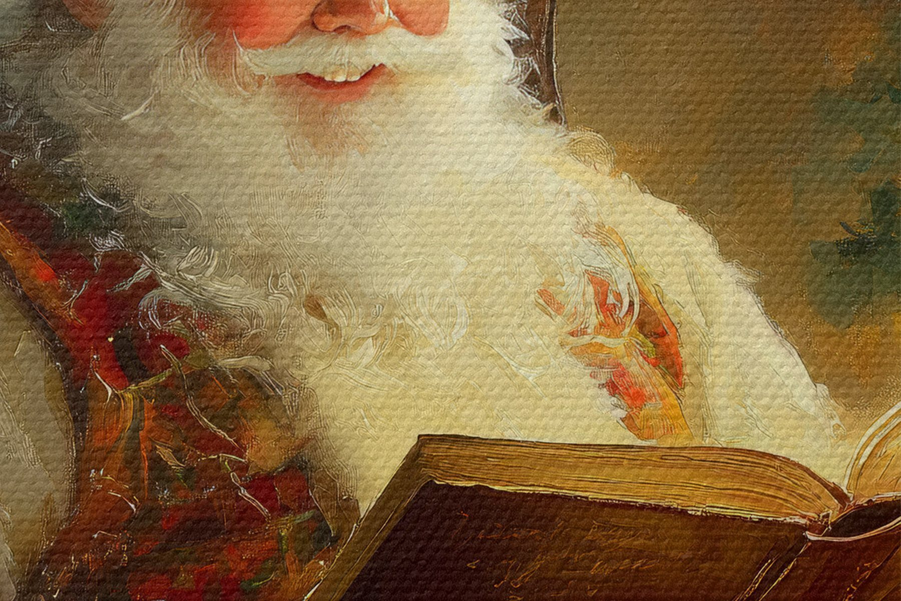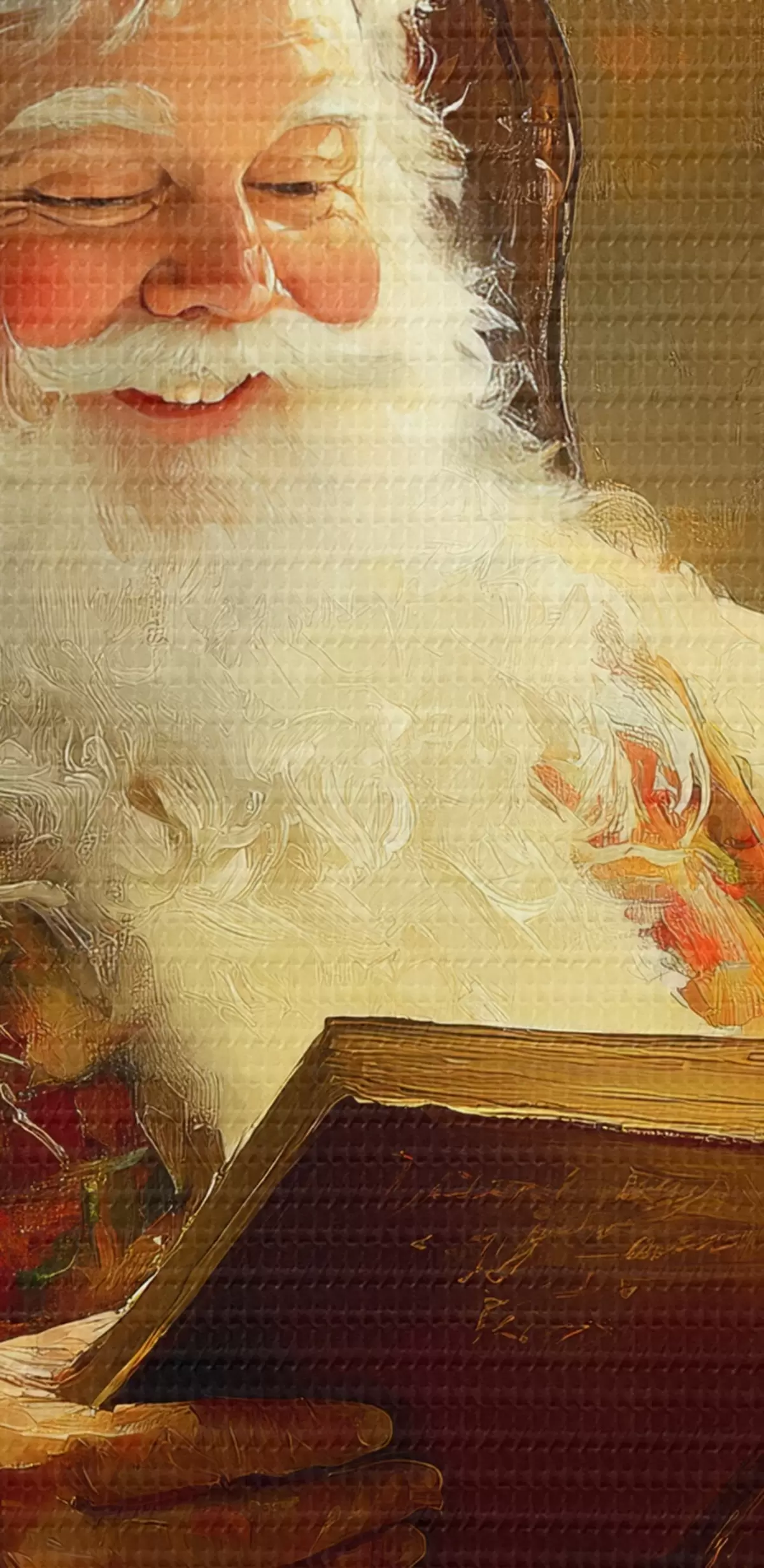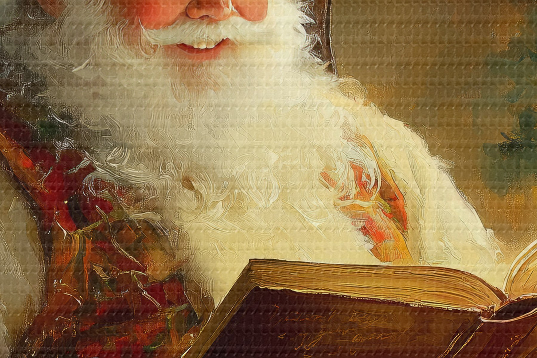 Cuadros redondos Papá Noel está leyendo un libro cerca del árbol de Navidad r42100