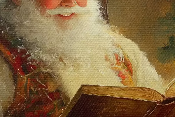 Foto Papá Noel está leyendo un libro cerca del árbol de Navidad Nr r42100
