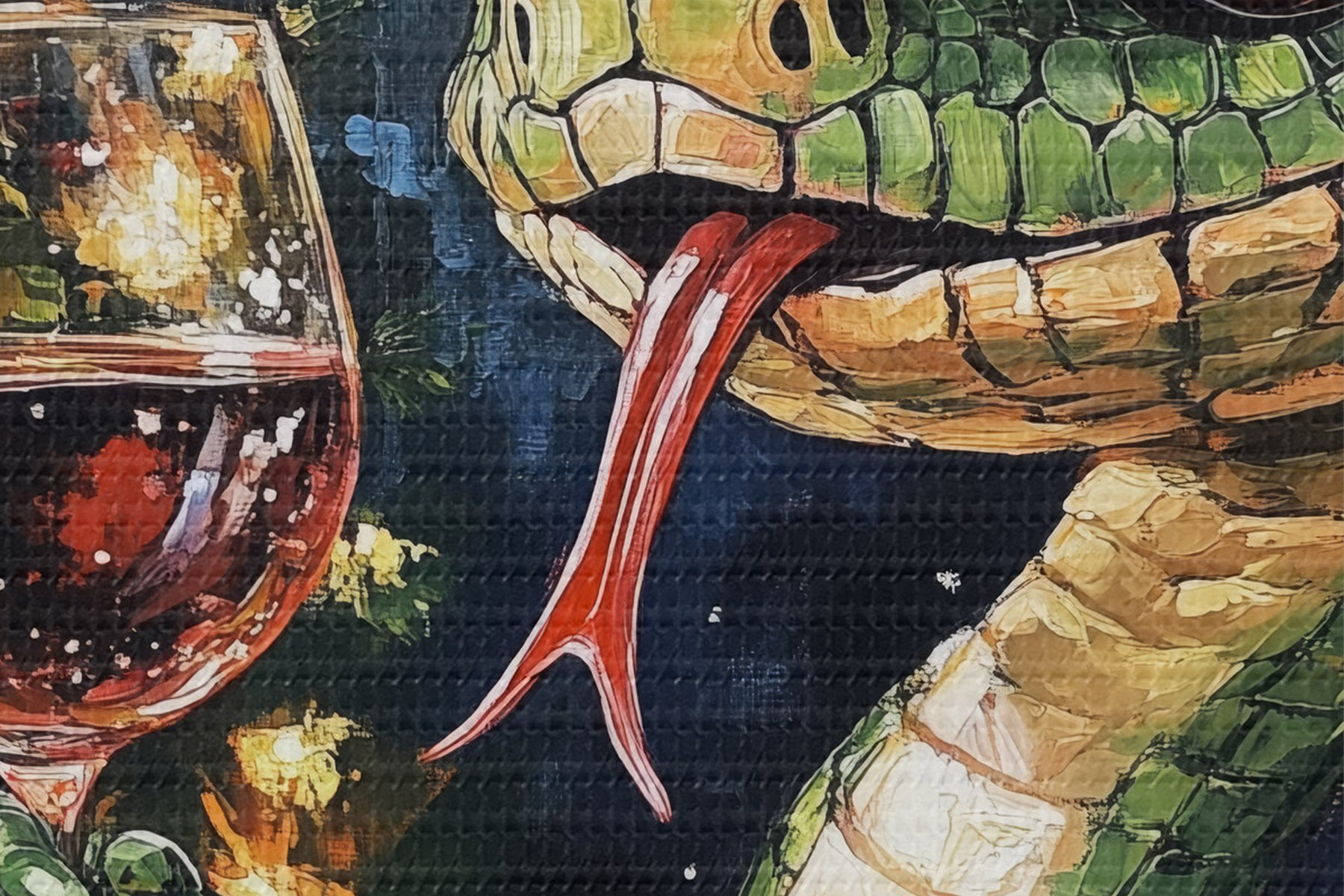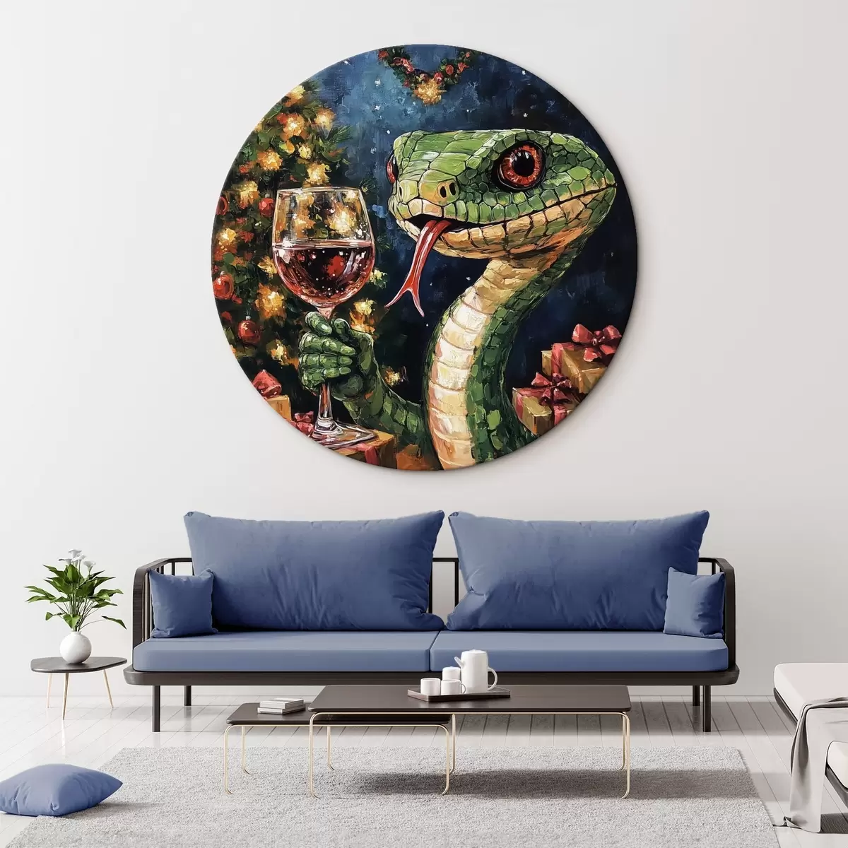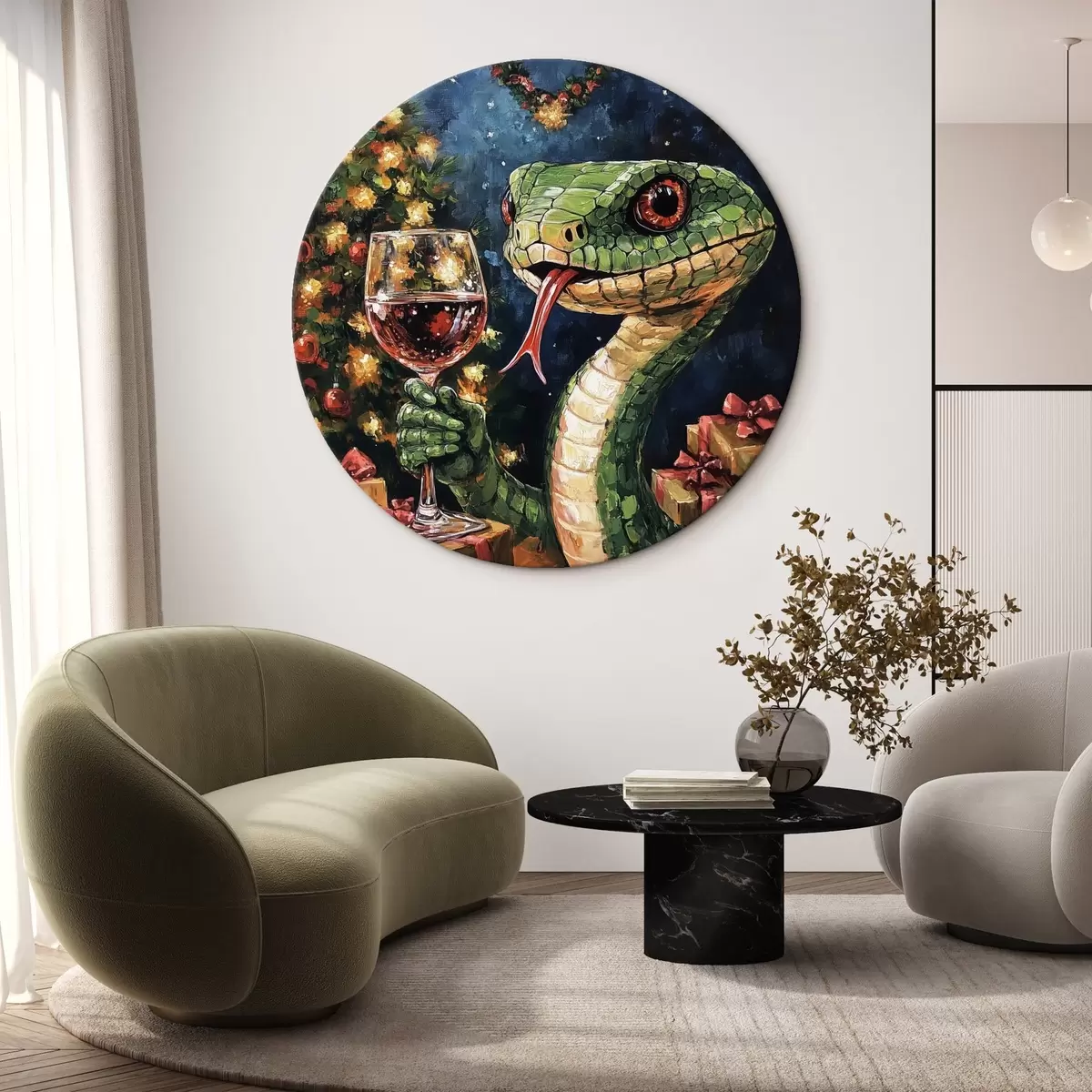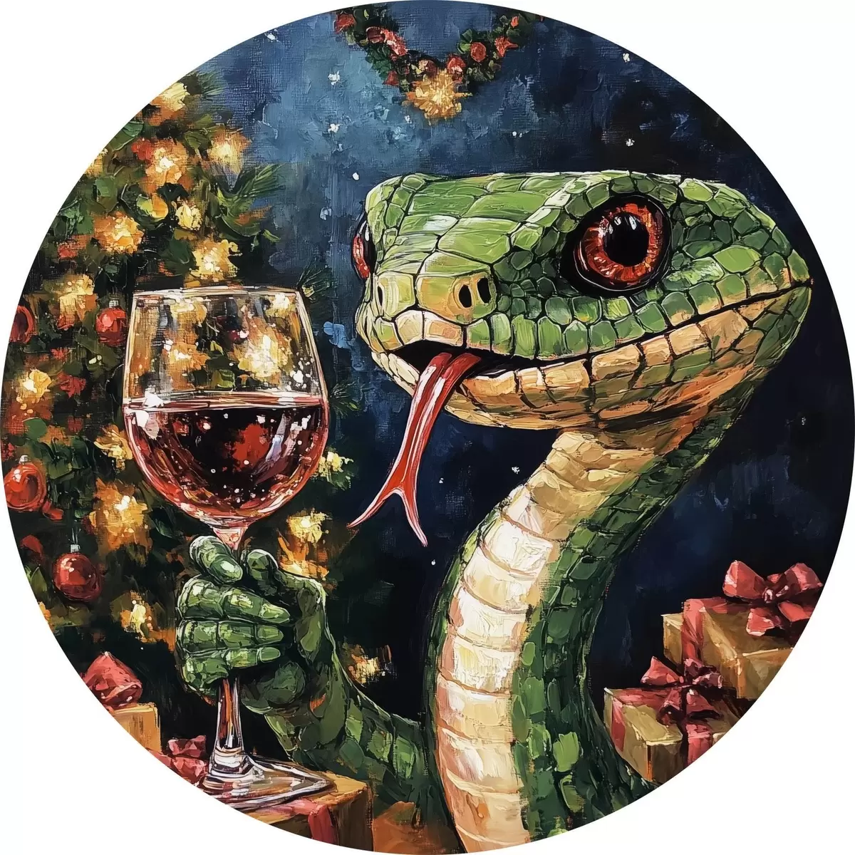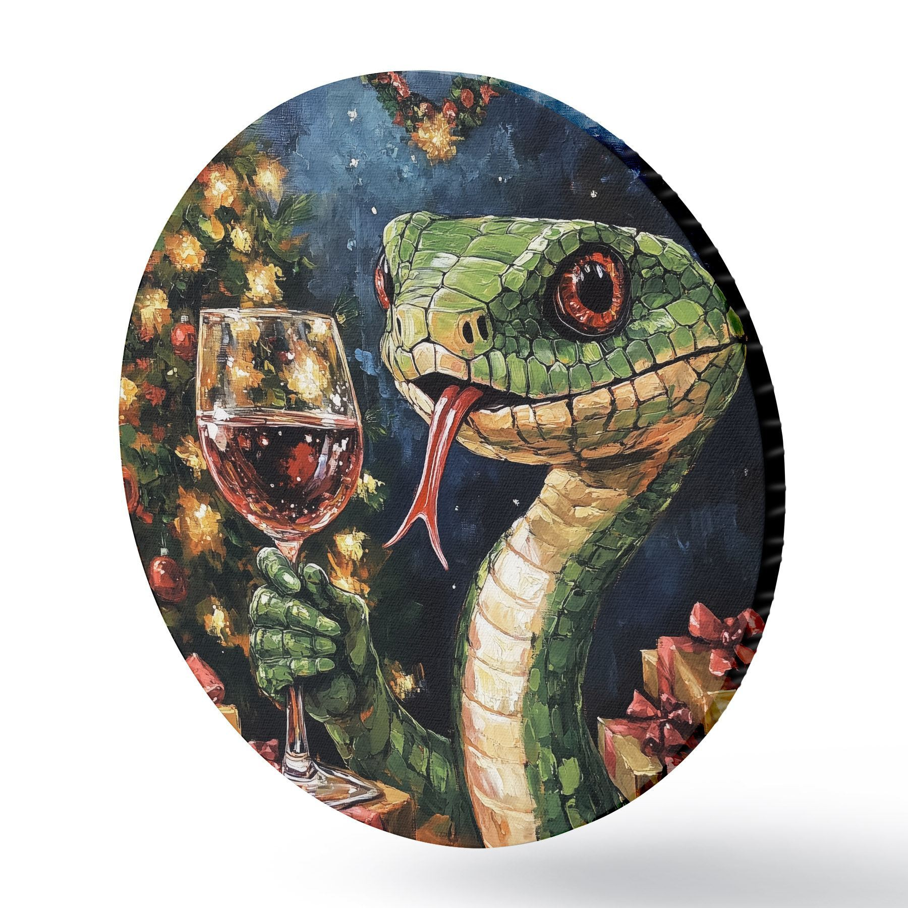 Cuadros redondos Una serpiente con un vaso de vino celebra el año nuevo r42106